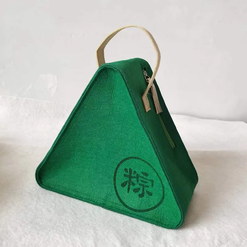 新款创意端午毛毡包公司商务伴手礼盒大容量三角毛毡手提袋粽子包