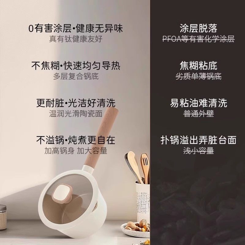 amercook陶瓷钛无氟涂层不粘奶锅可煎煮宝宝专用辅食锅牛奶泡面锅