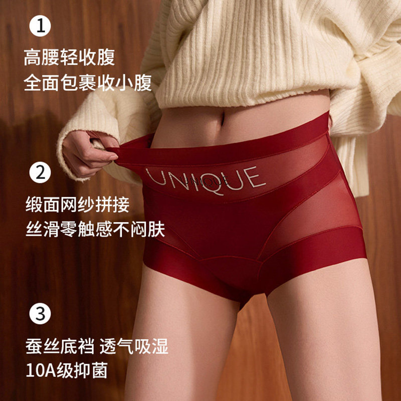 本命年内裤女10A抑菌无痕中高腰收腹透气全包裹平角短裤2026新款