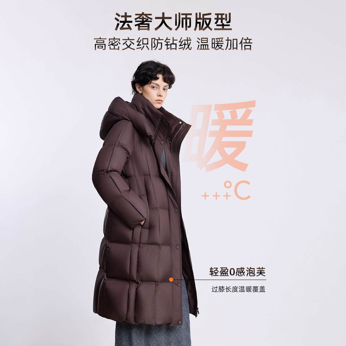 【法奢白金】0感泡芙LILY长款加厚鹅绒服女2025冬季新款连帽羽绒