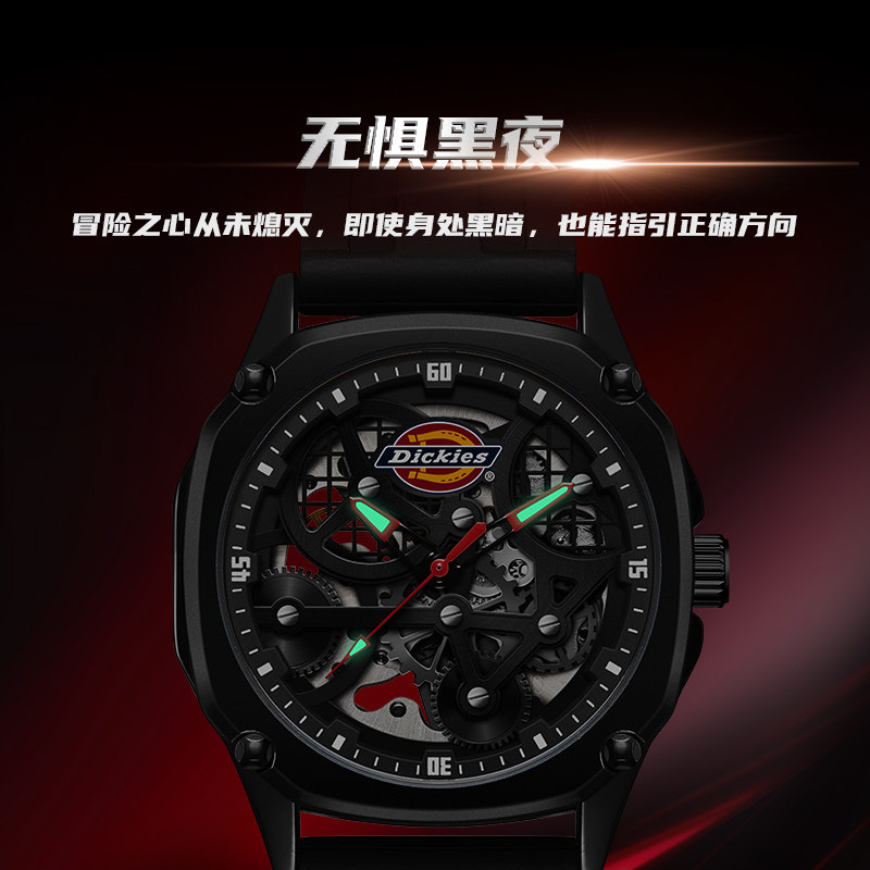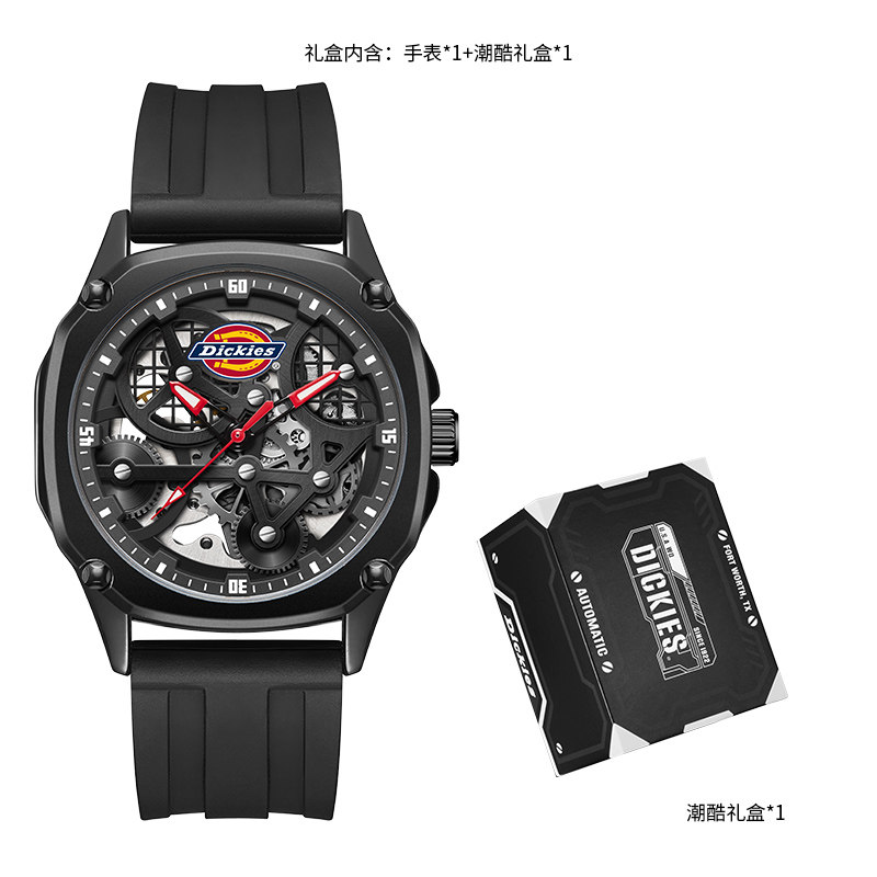 Dickies旗舰店全自动硅胶机械表男士镂空背透造物者学生腕表CL469