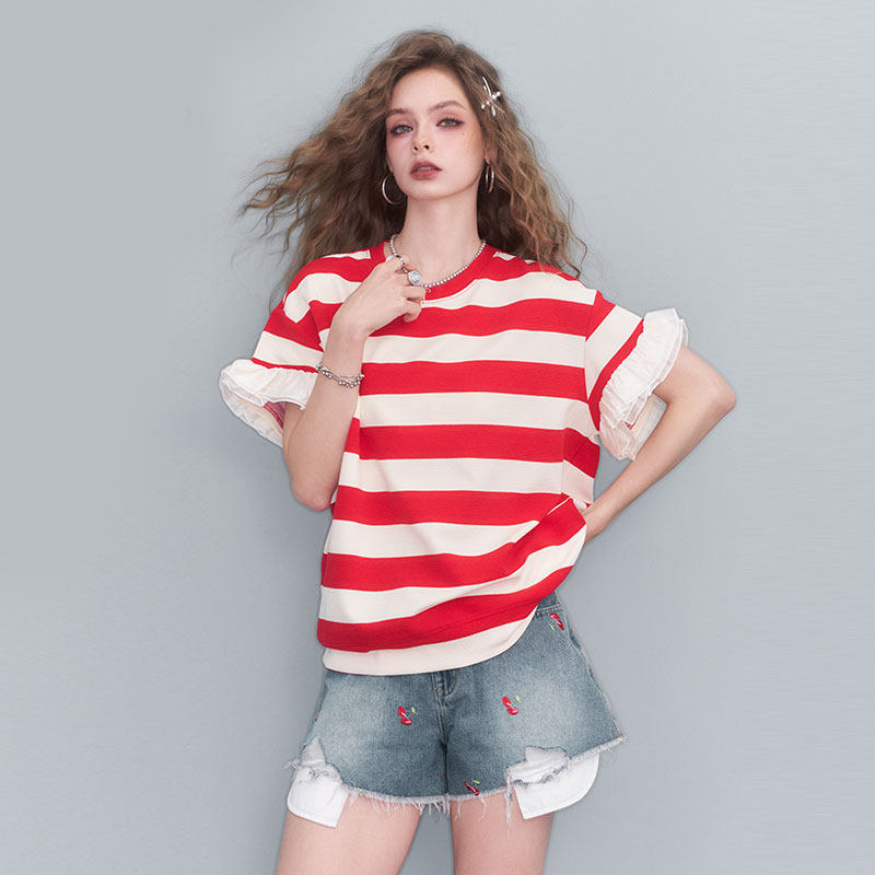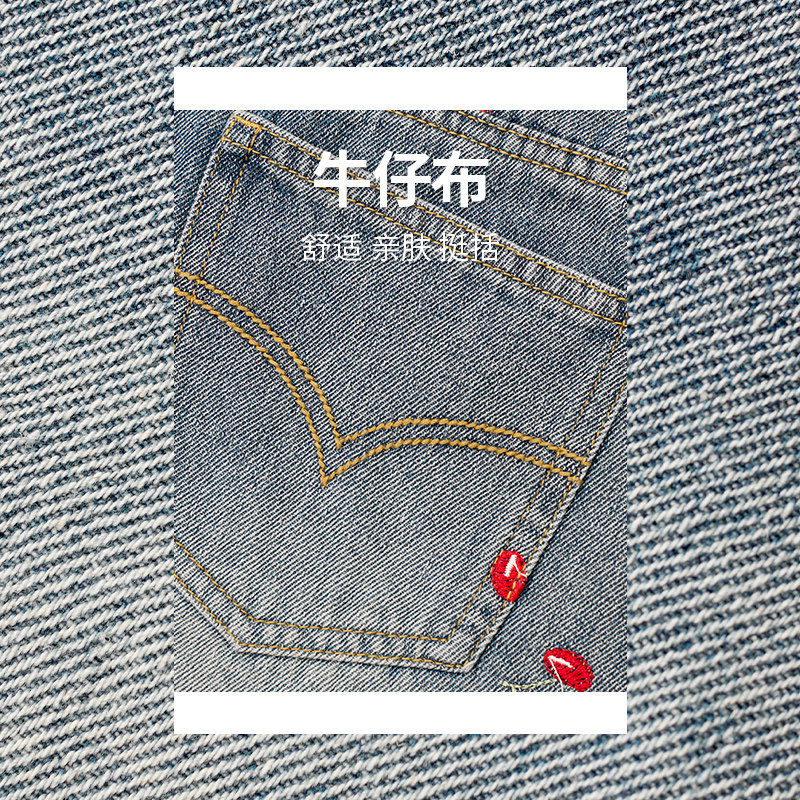 妖精的口袋樱桃刺绣不规则毛边牛仔裤女2025年夏季新款热裤短裤子