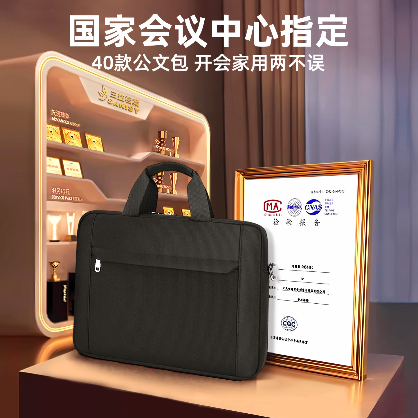 三益公文包高级感会议包男款手提袋牛津布防水拉链袋文件女士公文袋政府律师商务办公培训班资料袋定制印LOGO