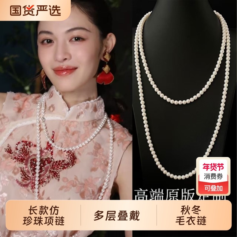 钟楚曦同款叠戴长款仿珍珠项链国风新中式旗袍配饰2025颈链毛衣链