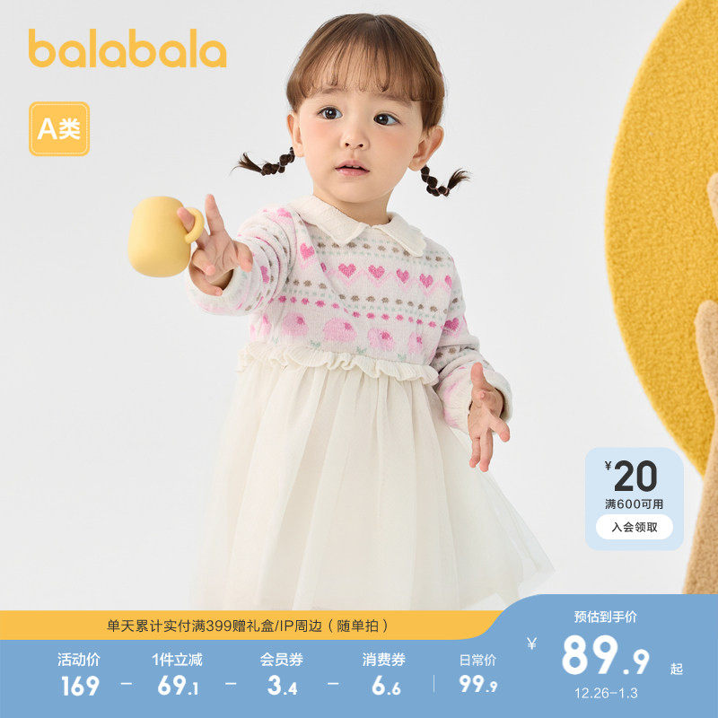 巴拉巴拉儿童裙子秋冬连衣裙女童公主裙纱裙假两件设计甜美精致萌