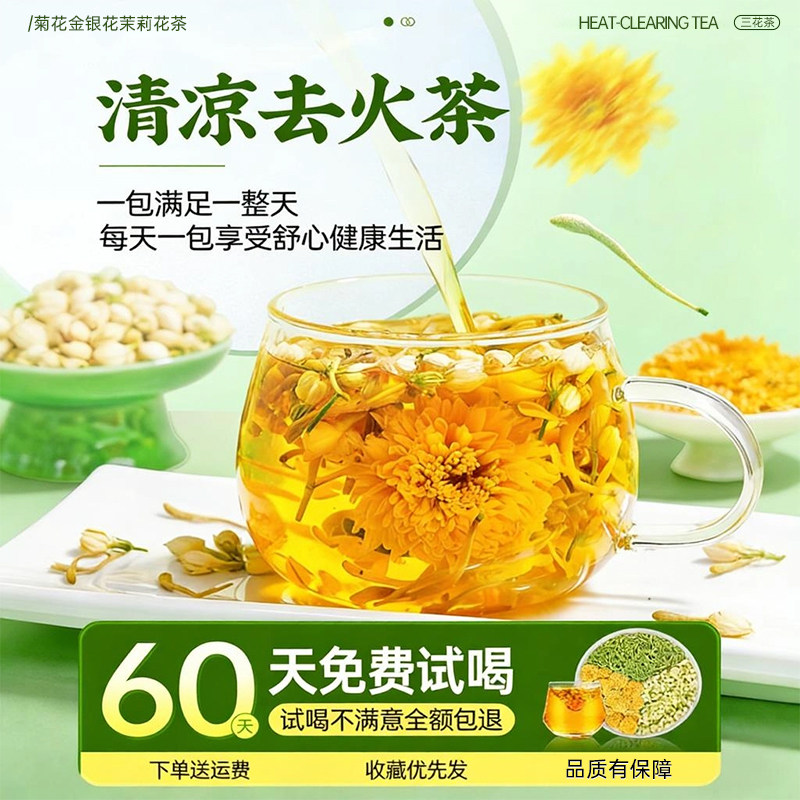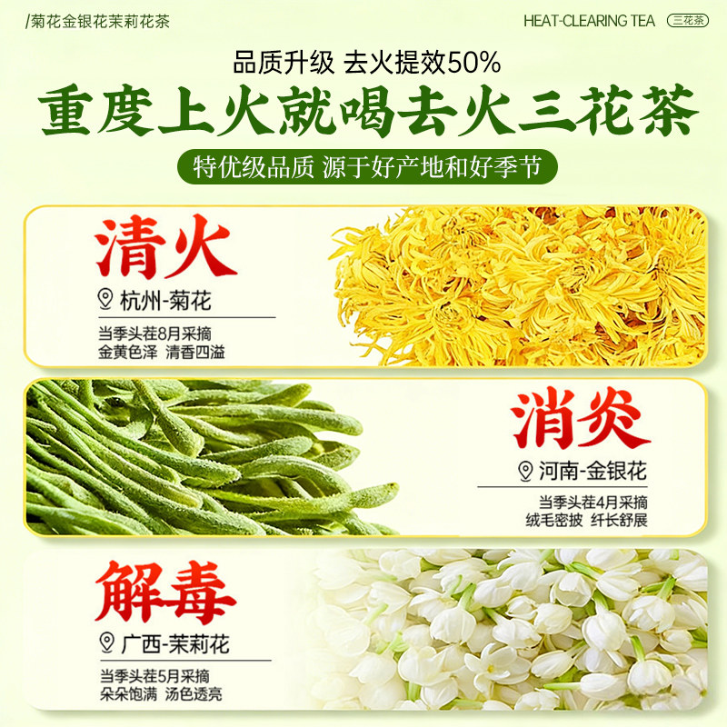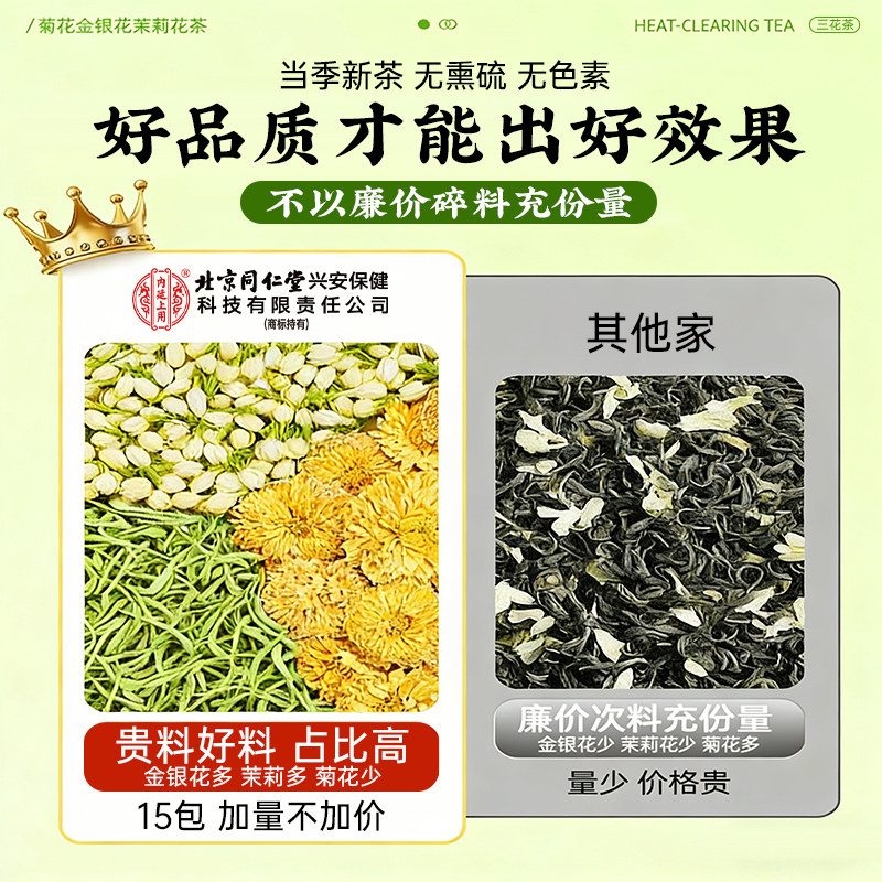 金银花菊花茶茉莉花去火清热凉三花茶养生茶北京同仁堂官方旗舰店
