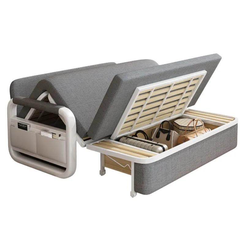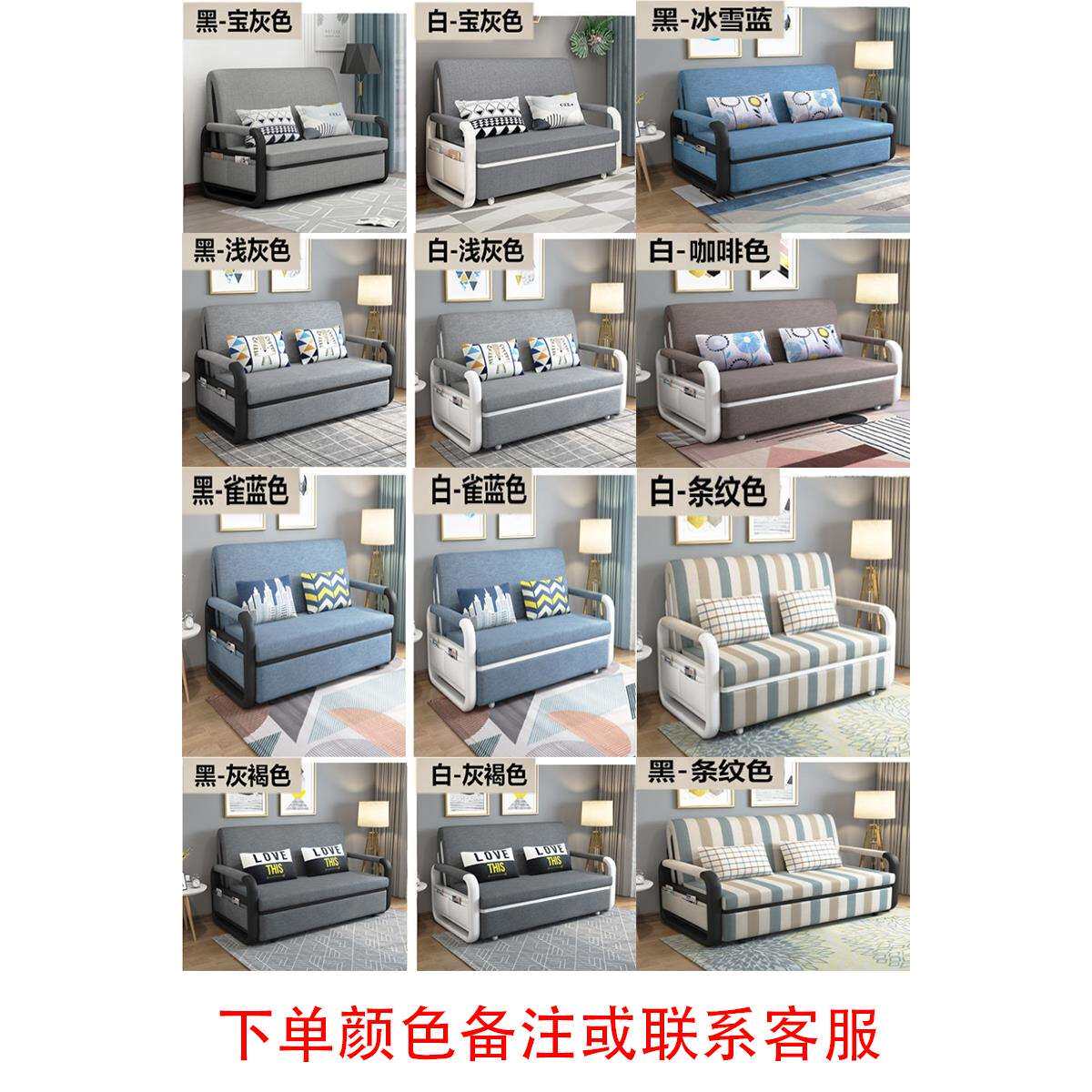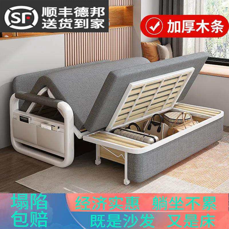W6可拆洗布艺折叠沙发床两用简易客厅小户型出租房双人卧室储物沙