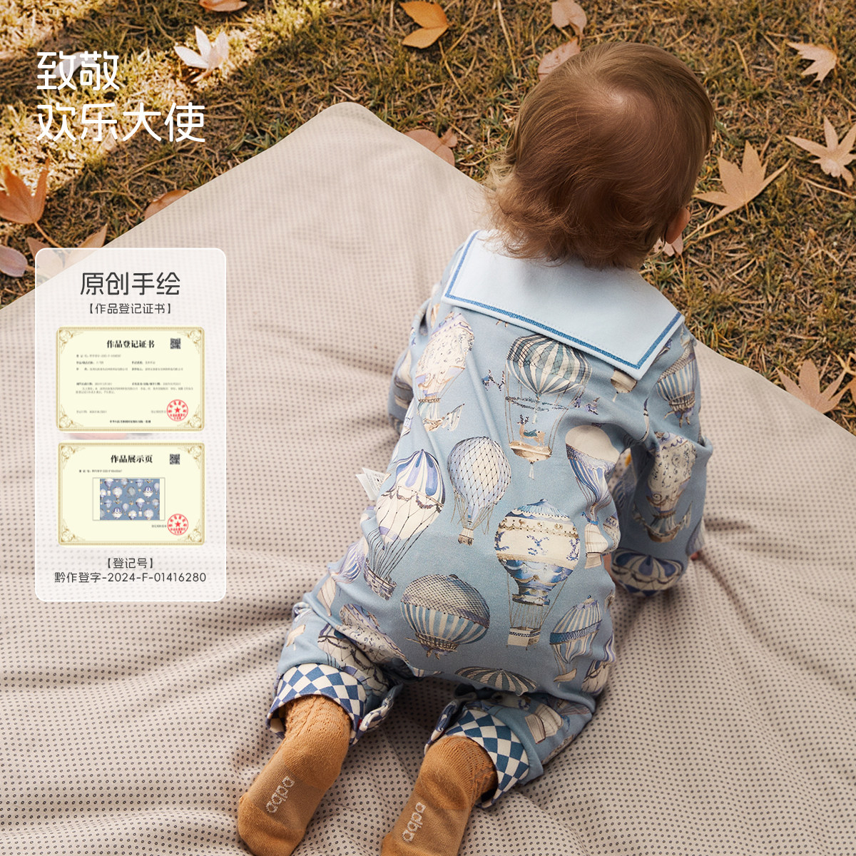 【璀璨蓝宝石】aqpa爱帕婴儿长袖前开连体衣纯棉哈衣爬服