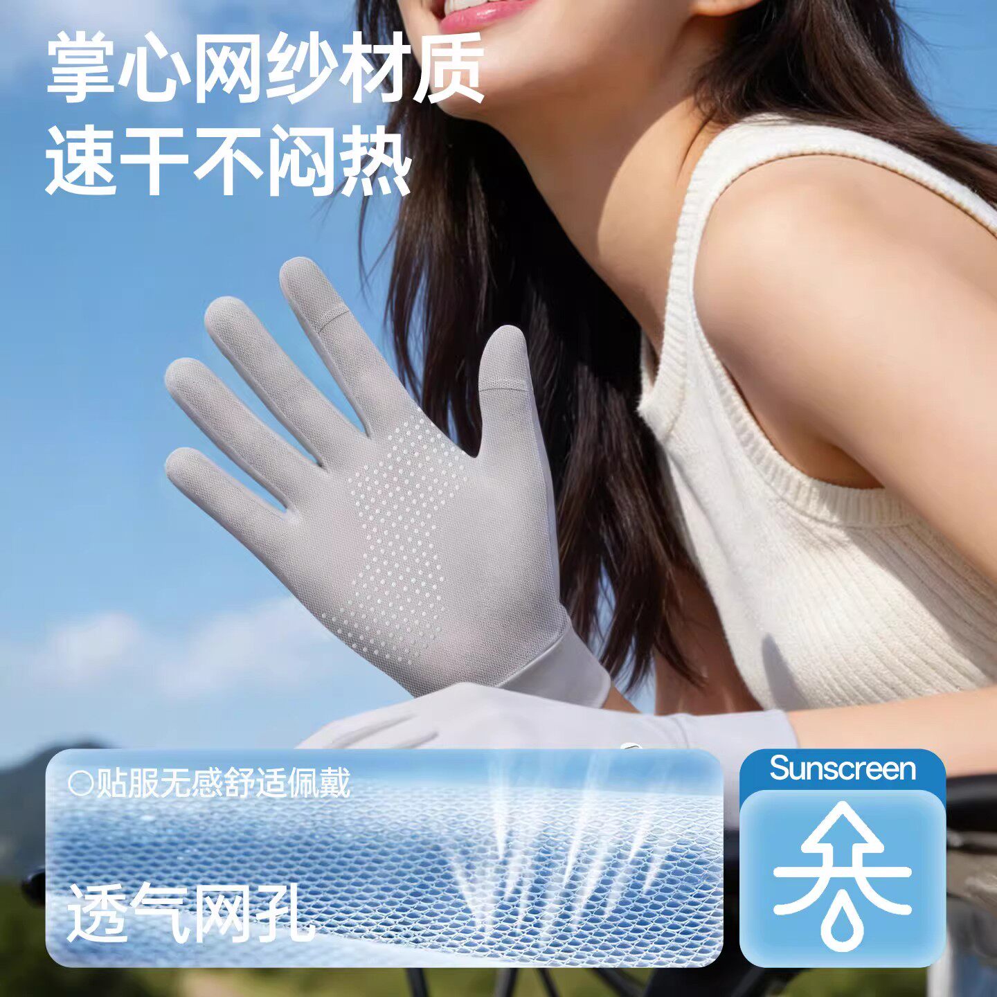 漏指防晒手套女款薄款夏季防紫外线透气骑行手套防滑冰丝触屏女士