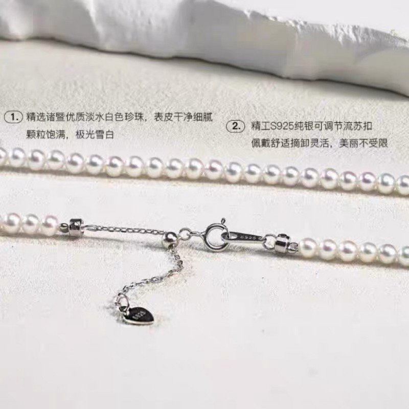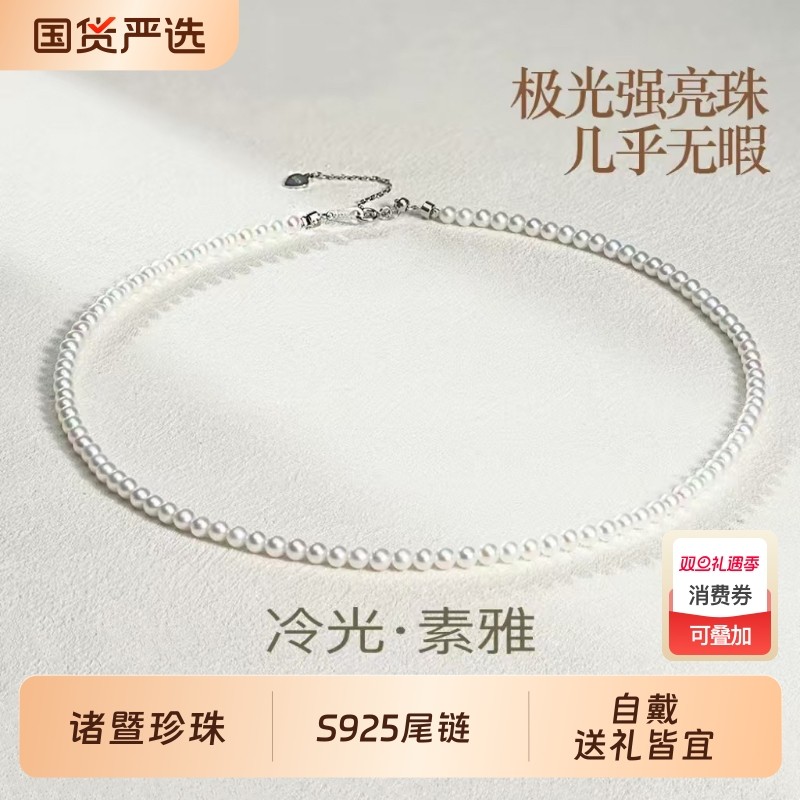 S925银淡水珍珠项链女正圆baby珠诸暨全珠链优雅气质百搭颈链礼物