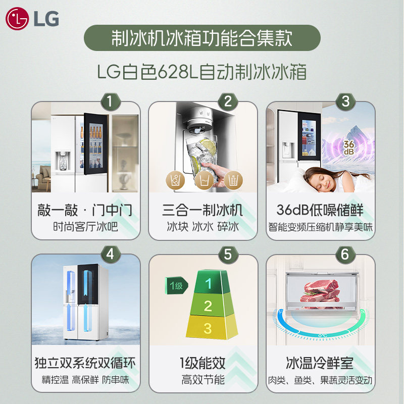 LG628L敲一敲透视窗一级对开门自动制冰冰箱
