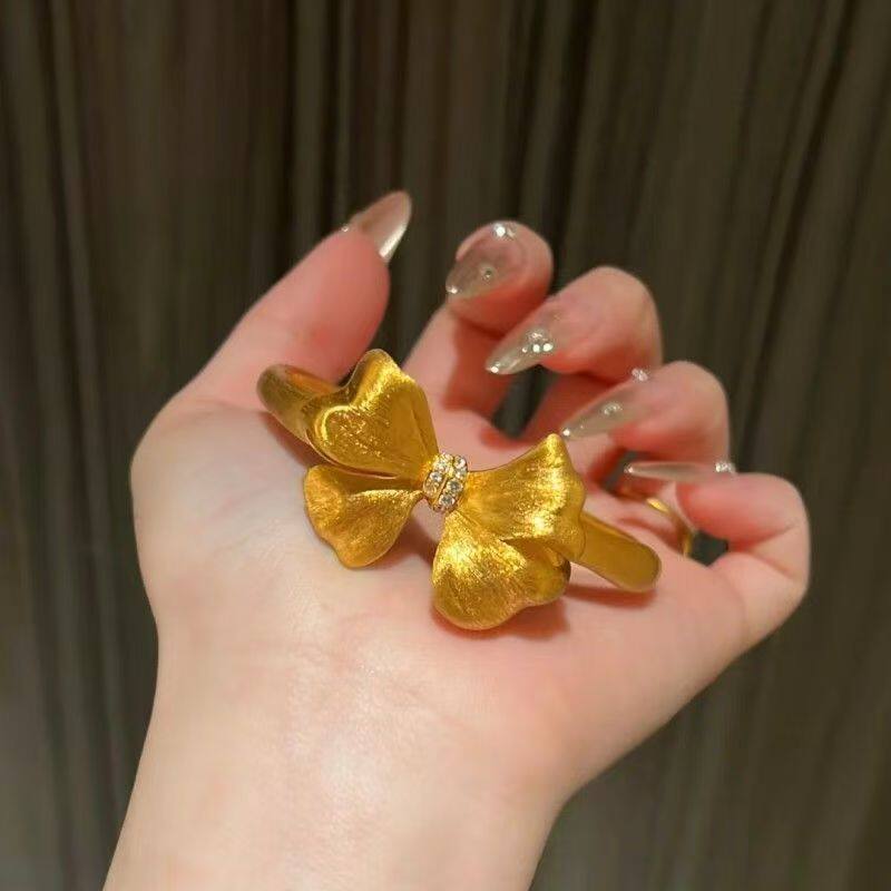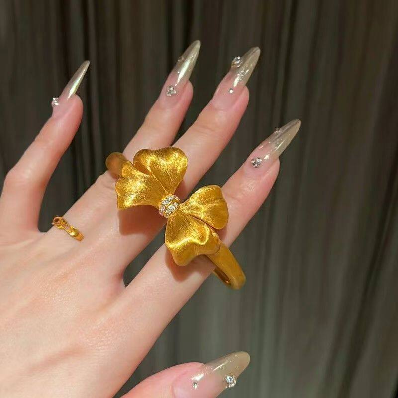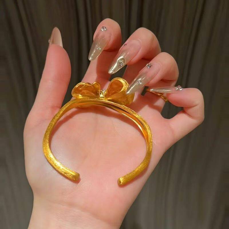 金色古法拉丝蝴蝶结可调节手镯开口精致灵动女士百搭首饰节日礼物