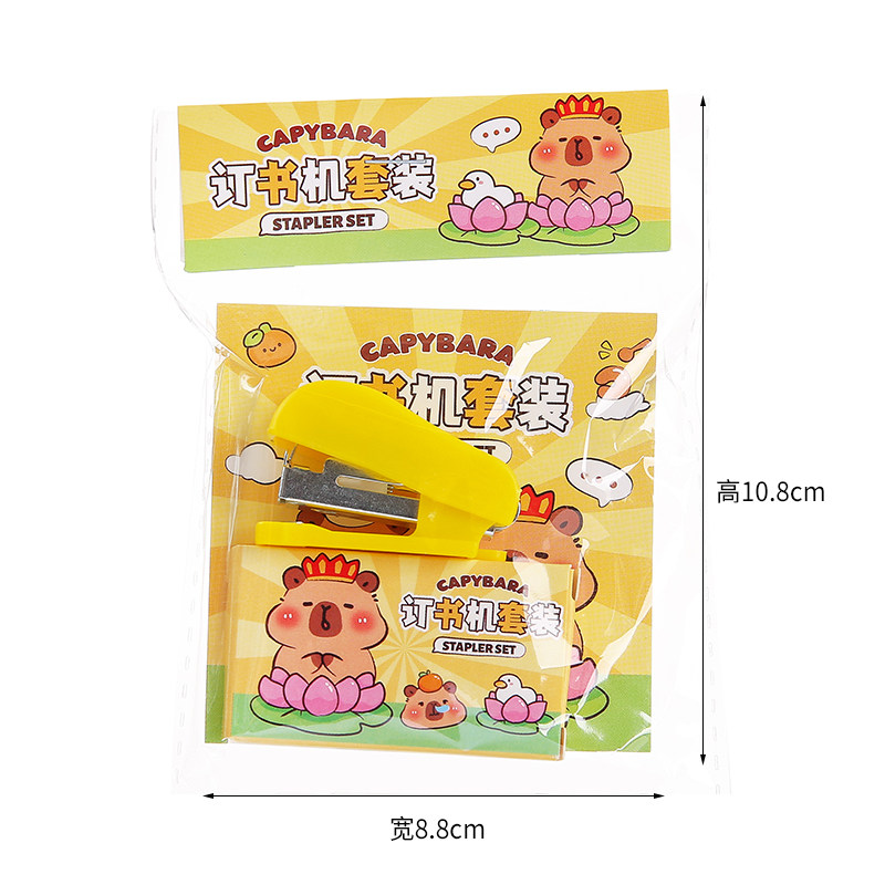 可爱卡通迷你订书机套装便携学生办公省力订书器文具用品卡通公仔