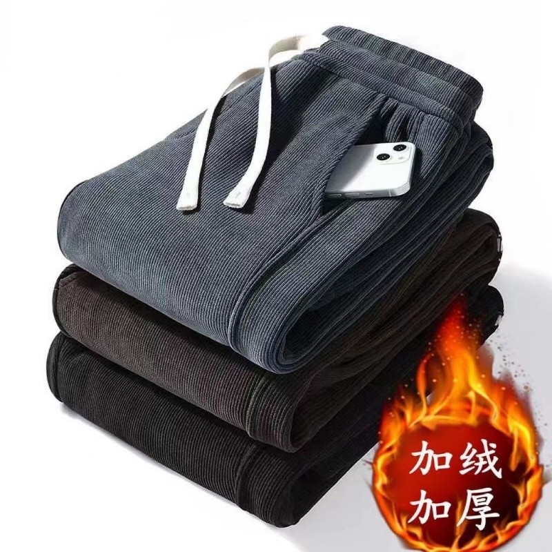 休闲裤男士秋冬季灯芯绒加绒加厚束脚宽松长裤子灰色外穿舒适咖色