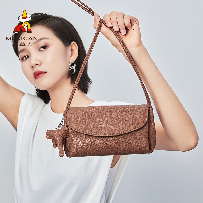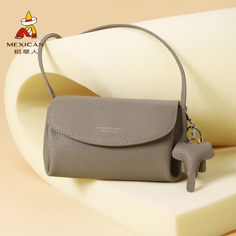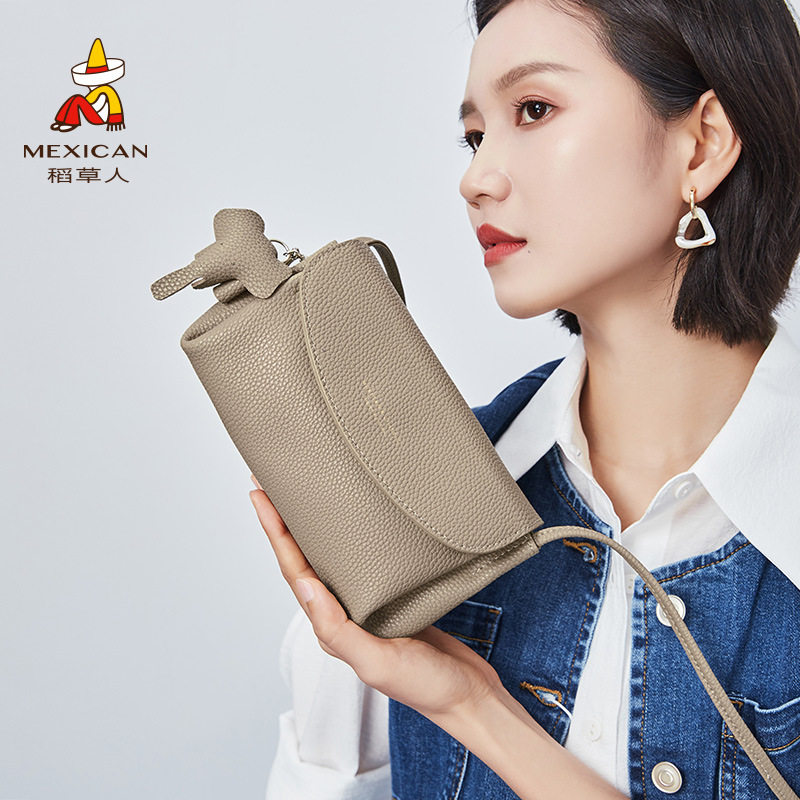稻草人包包女时尚真皮百搭小方包单肩包高级感牛皮通勤斜挎包女包
