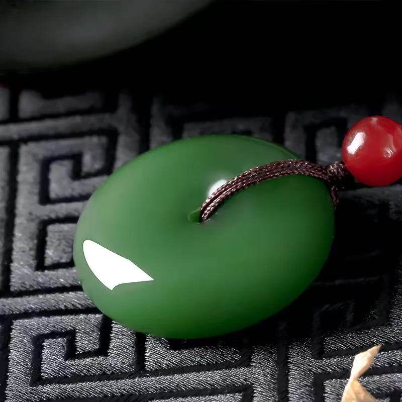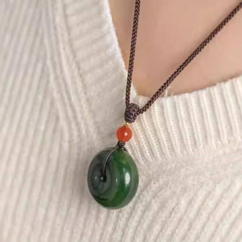 周大生和田玉平安扣吊青玉石项链本命年女编绳挂坠生日礼物送女友