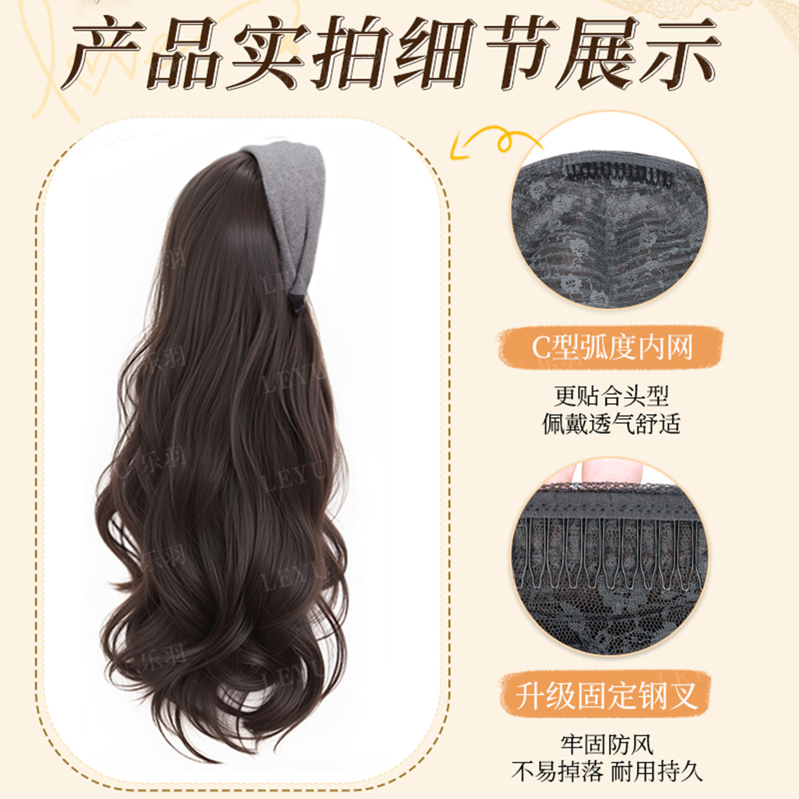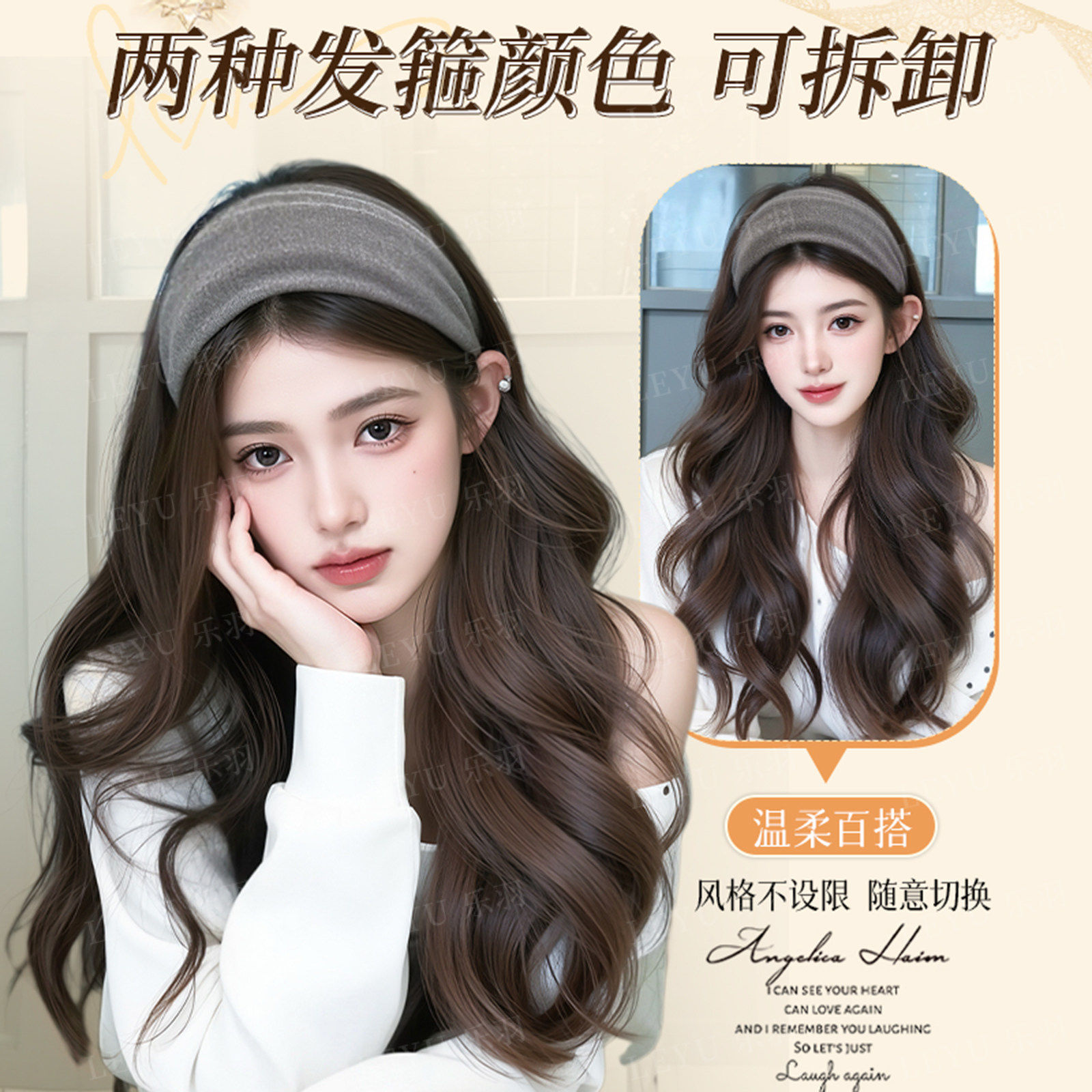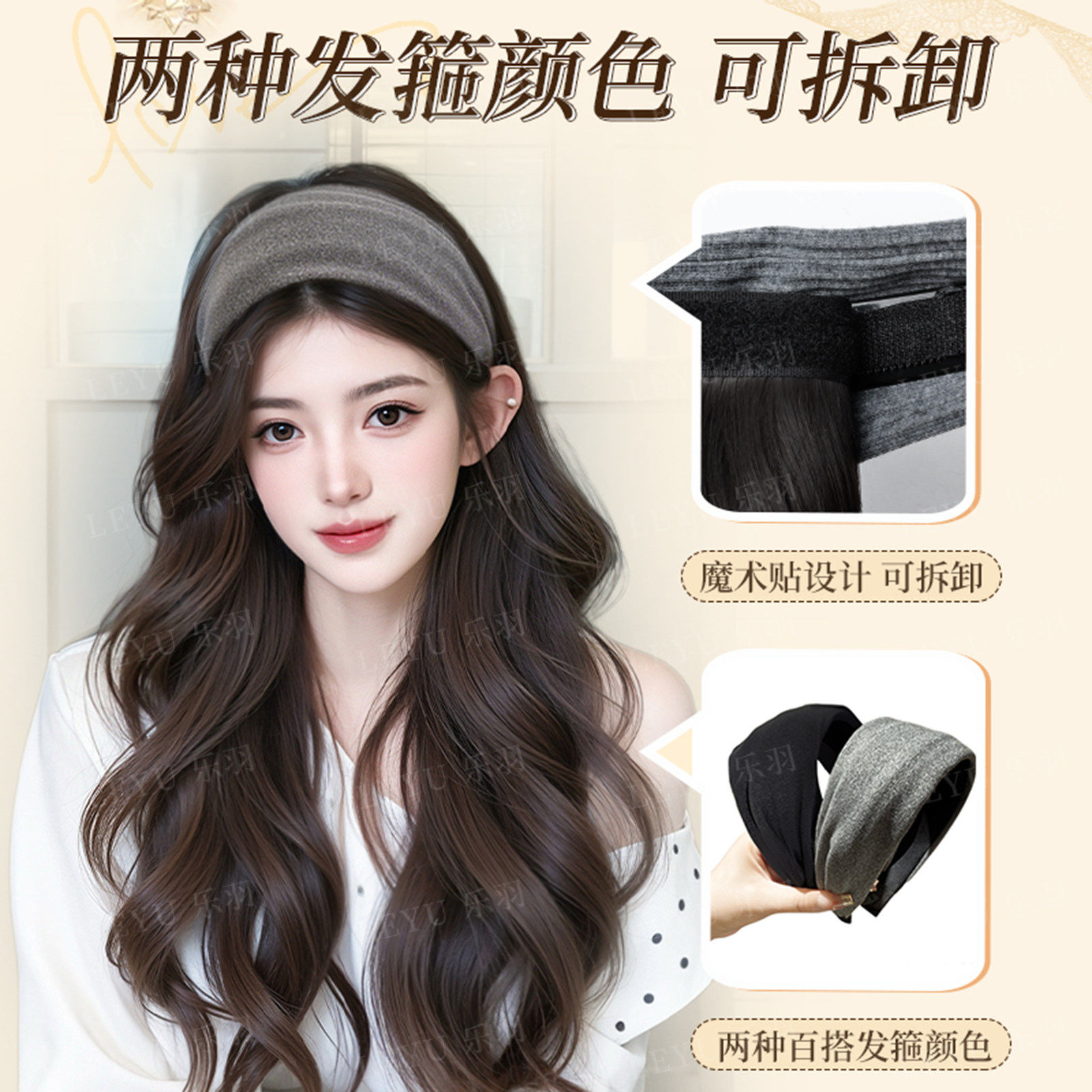 发箍假发一体女仿真明星同款植绒高质量大波浪卷发假发套中分刘海