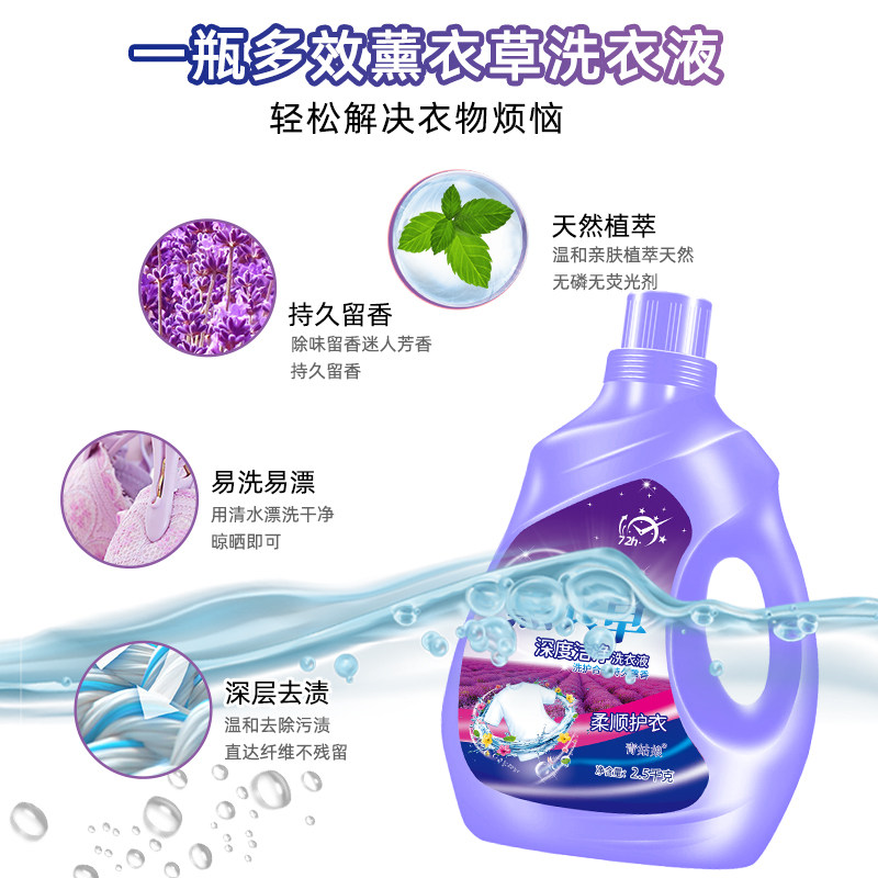 薰衣草洗衣液留香深层去污除螨低泡易漂家用装柔顺串色护色洁净