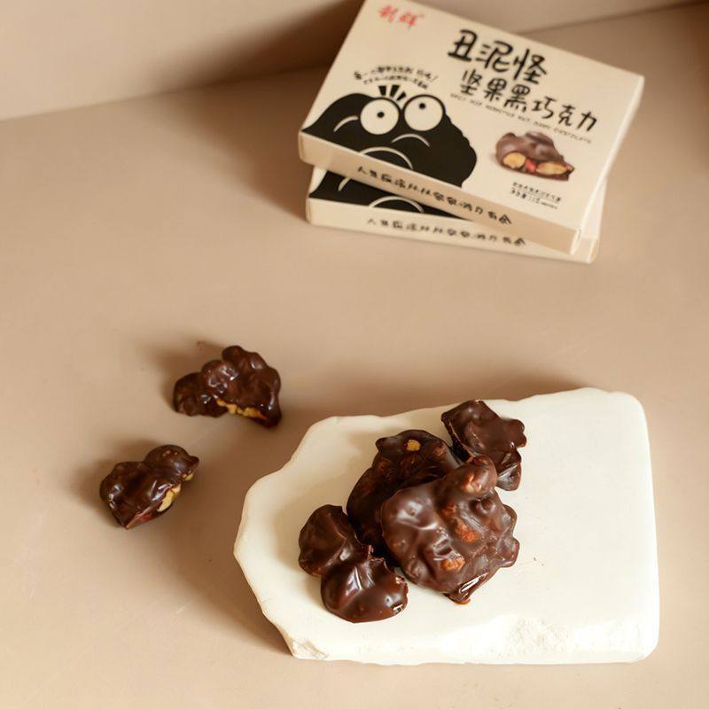 丑泥怪坚果黑巧克力丑墩墩可可脂坚果夹心白巧黑巧块零食高端年货