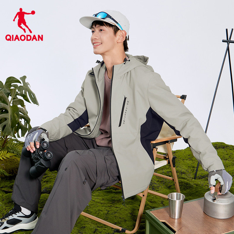 乔丹山神户外运动服男女款连帽防水外套防风保暖徒步登山风衣夹克