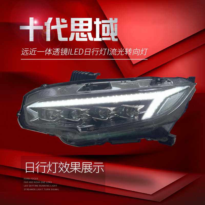 适用于十代思域大灯总成FK8改装龙翼LED日行灯流水转向灯透镜大灯