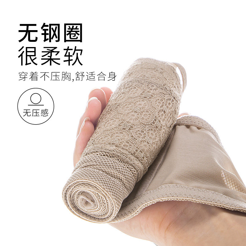润微茶肌内衣女士大胸显小薄款收副乳聚拢大码上托防下垂蕾丝文胸
