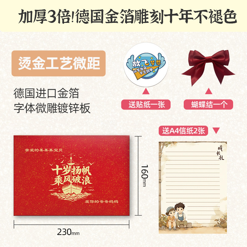 儿童十岁生日礼盒套装定制信封烫金姓名成长礼仪式感纪念品创意