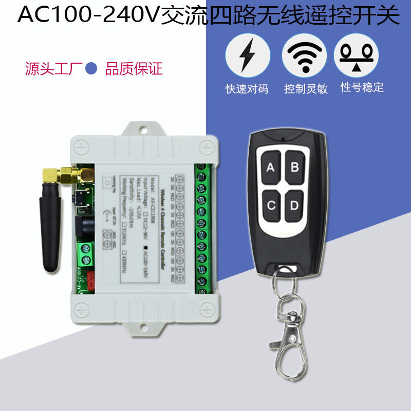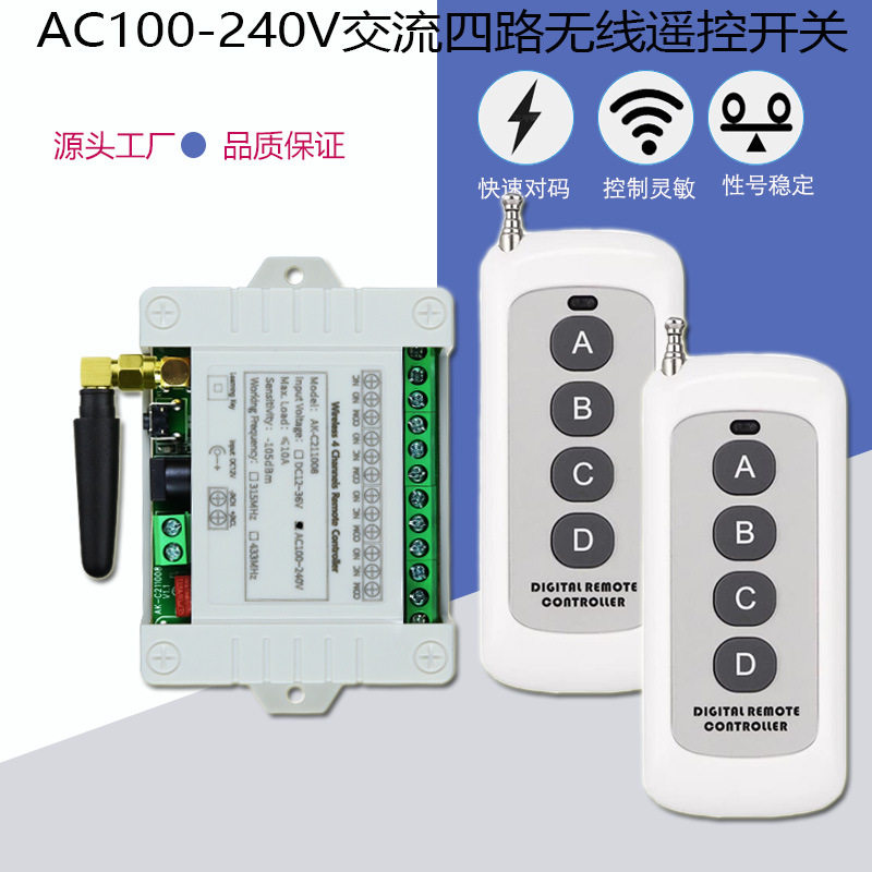 智能遥控开关220V交流四路摇控控制水泵 电机 控制电源继电器开关