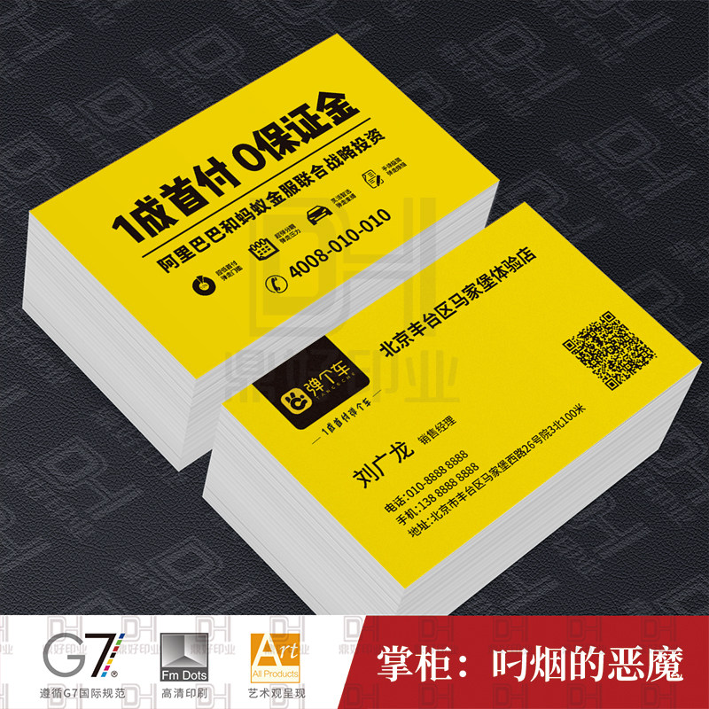 弹个车名片制作印刷定制订做设计二手车销售顾问铜版纸双面二维码