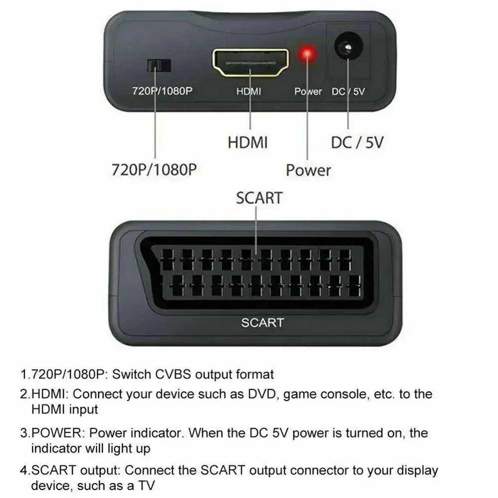 热销 塑胶壳scart转hdmi转换器 HDMI转scart扫把头电视转换器