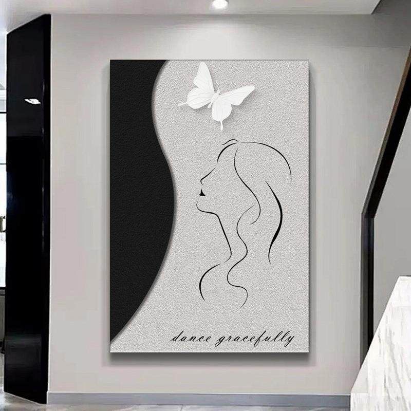 轻奢简约玄关装饰画客厅砂岩无框画现代简约高档壁画走廊过道挂画