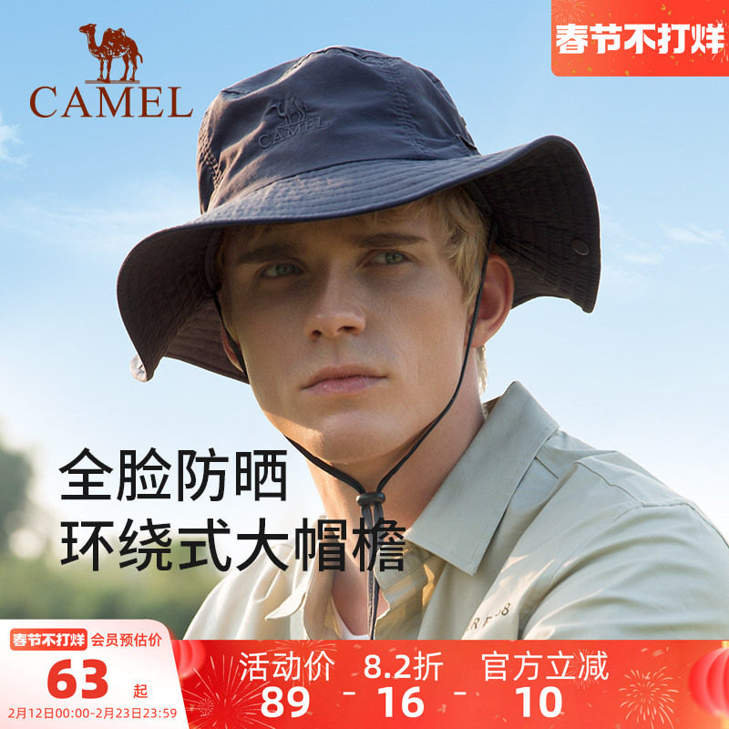 骆驼户外登山帽男夏遮阳防晒徒步牛仔帽防紫外线速干大檐渔夫帽女