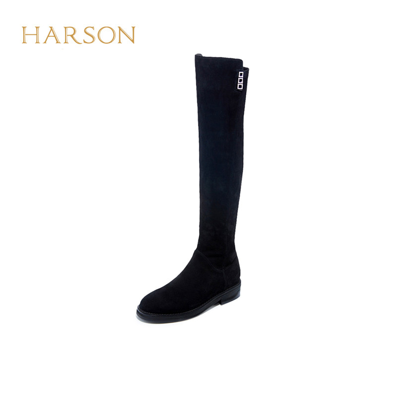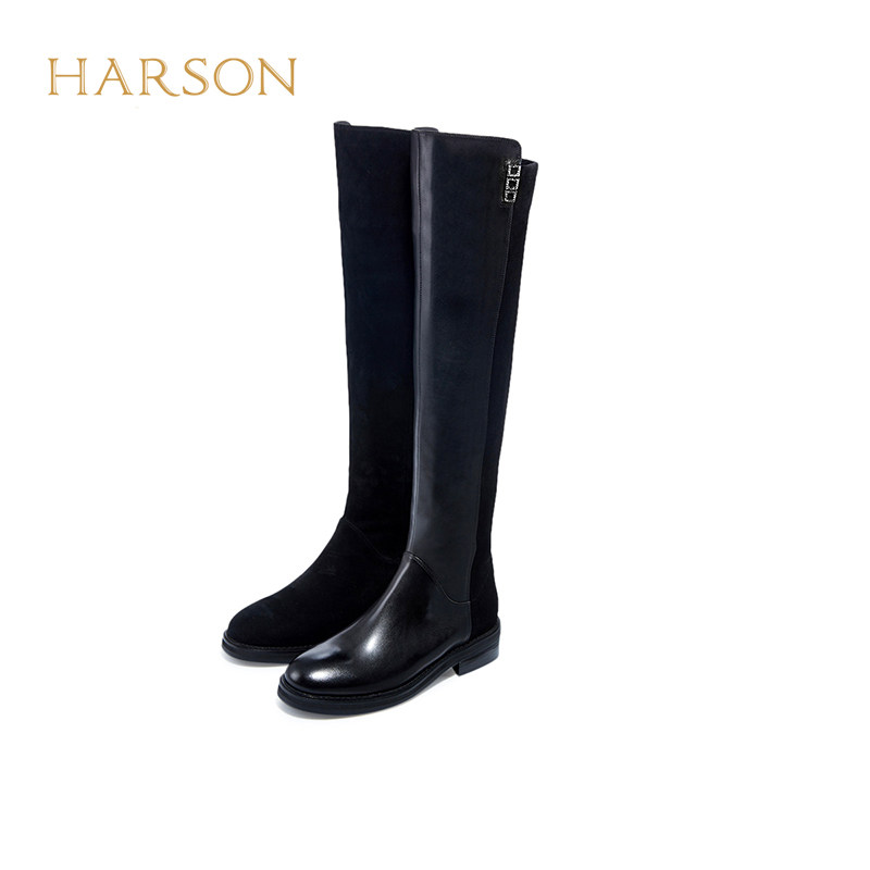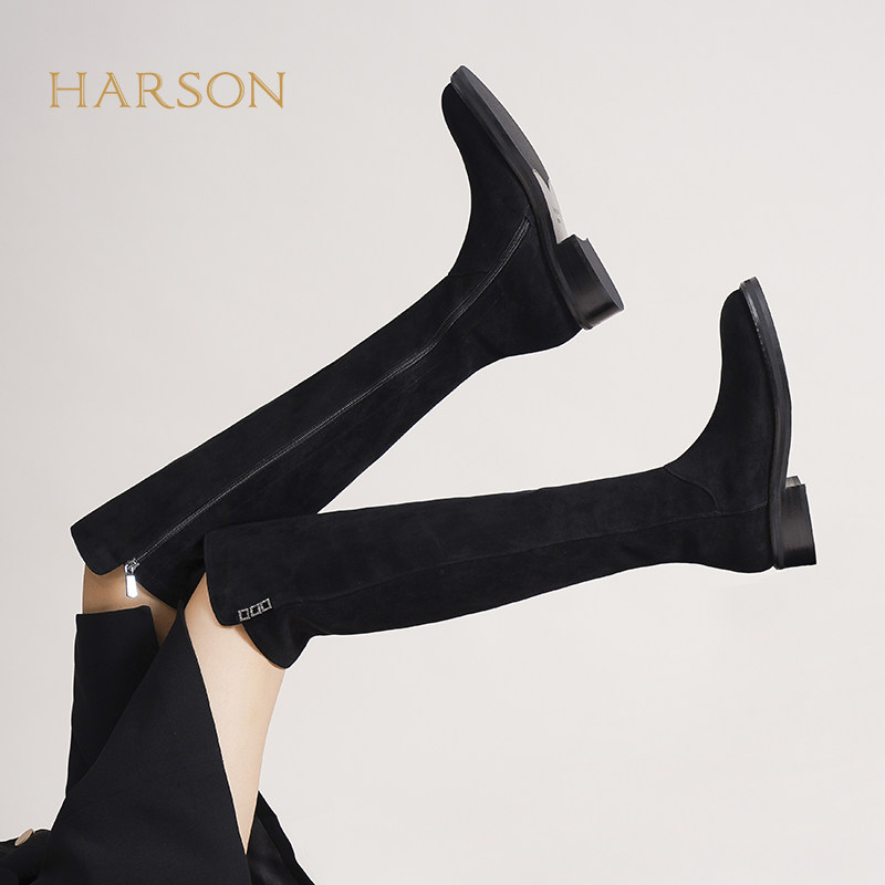 哈森冬季新款长靴女圆头方跟高筒弹力瘦瘦靴过膝女靴HA225802
