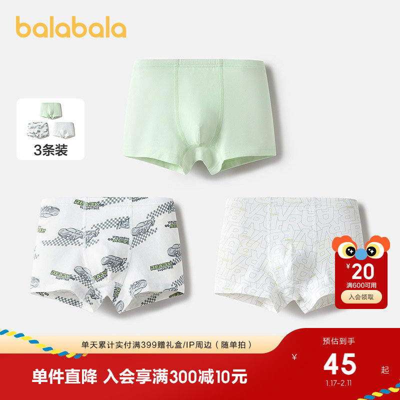 【balaOne】巴拉巴拉儿童内裤棉男童不夹pp抗菌裆四角短裤三条装