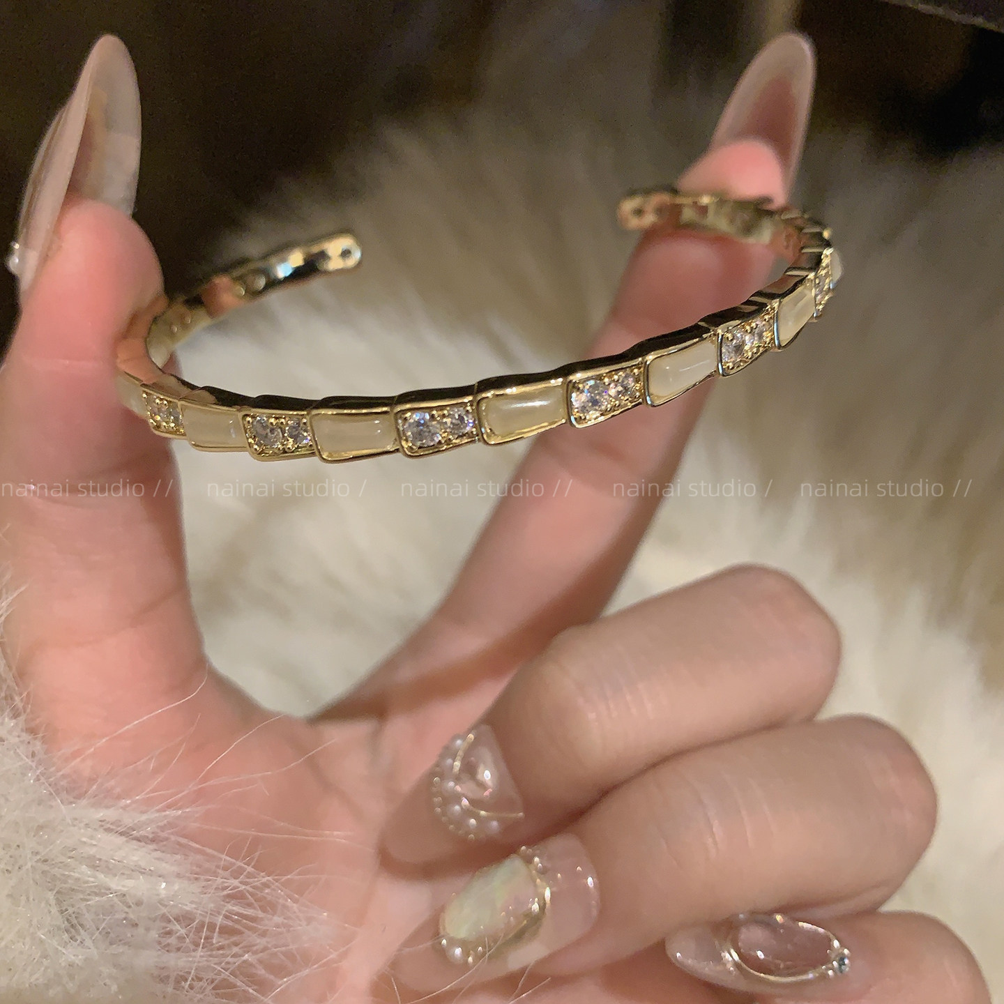 猫眼石蛇形手镯~高级感轻奢小众设计闪钻手链手饰2025新款配饰女