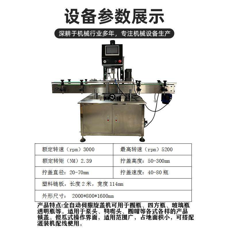 鸭嘴盖四轮全自动喷雾洗衣液伺服旋盖机拧盖机真空塑料瓶旋盖机