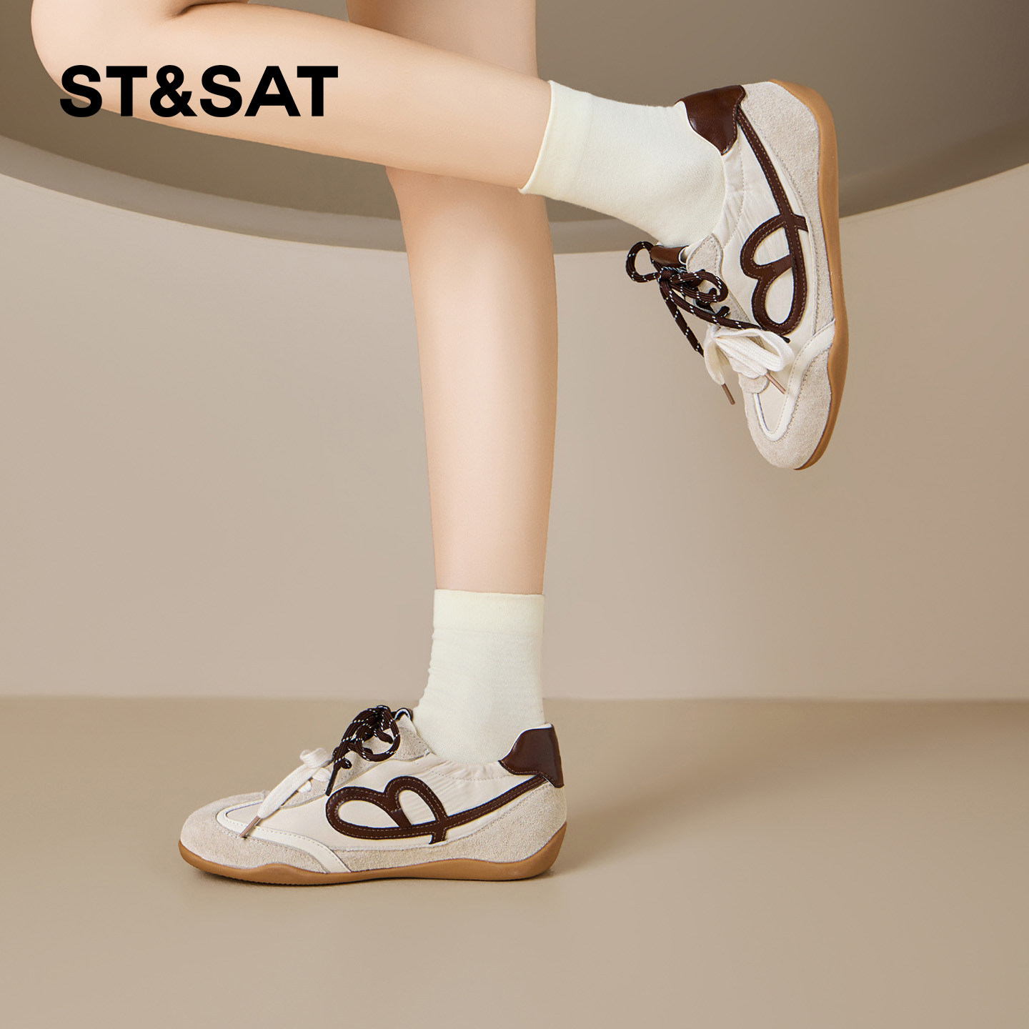 星期六复古拼色德训鞋女2026春季新款百搭配裙子内增高休闲运动鞋