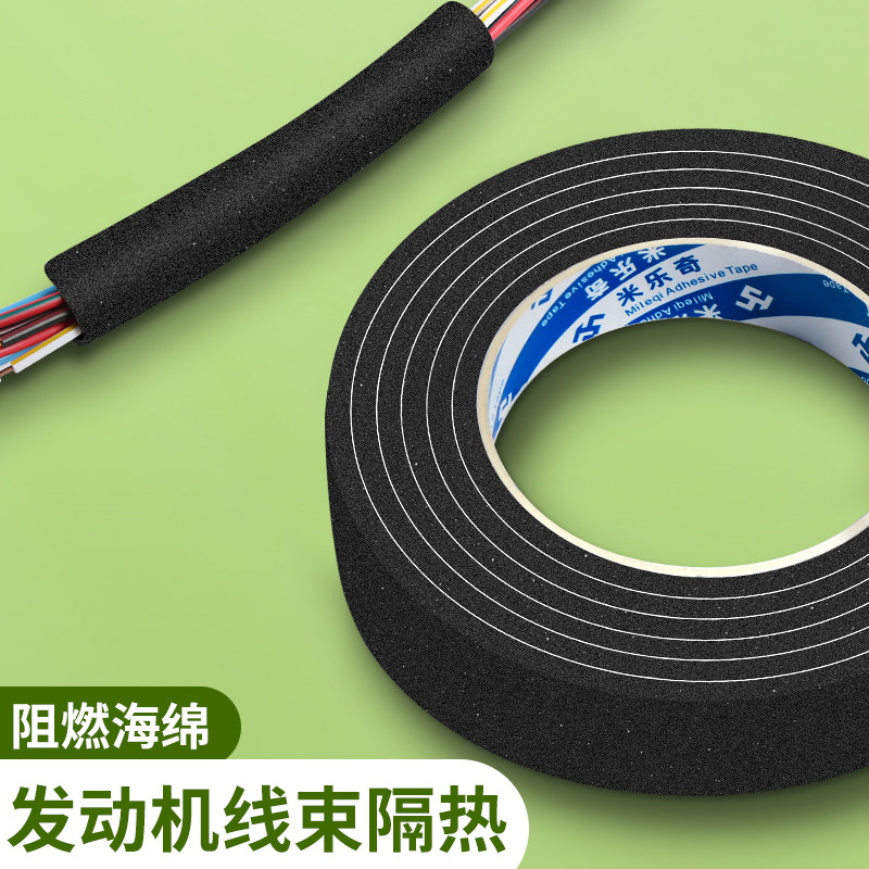 汽车线束隔音棉缠绕带套管保护套防震防火阻燃电子防尘防撞密封缓冲泡沫棉降噪耐高温音响线束捆扎海绵胶带