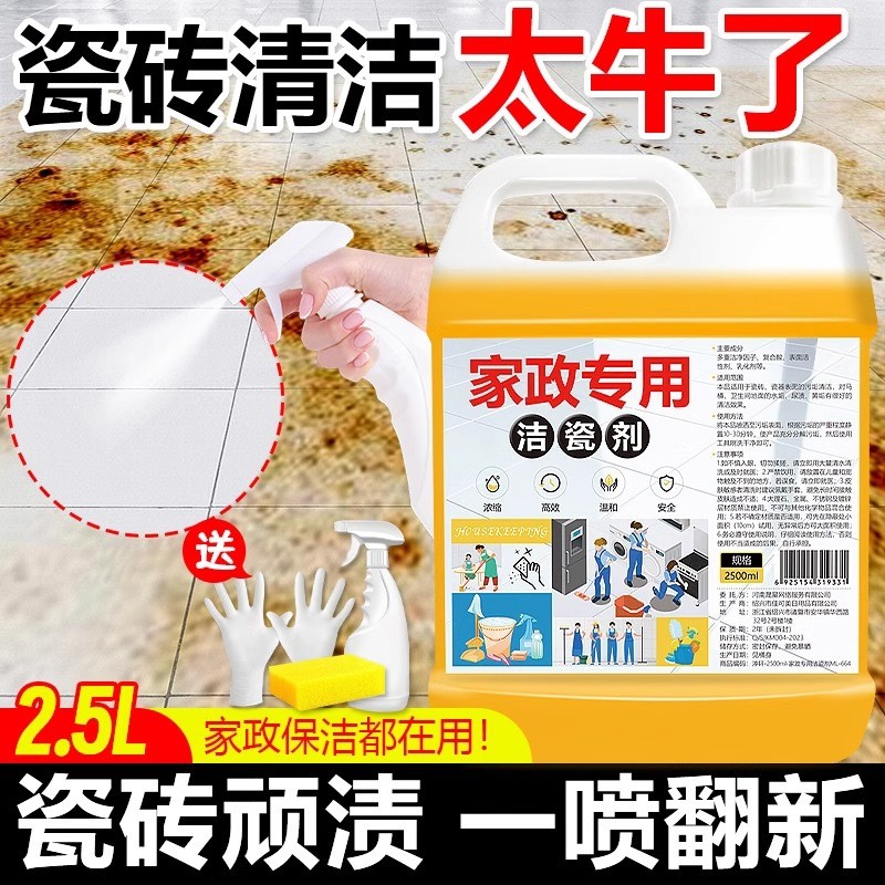 瓷砖清洁剂地板砖强力去污去黄抛光卫生间洁瓷精翻新除垢清洗神器