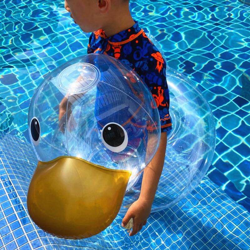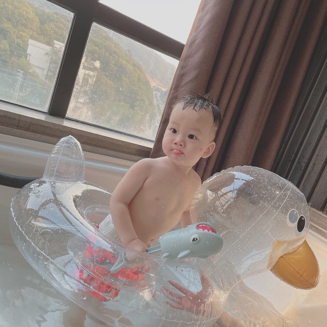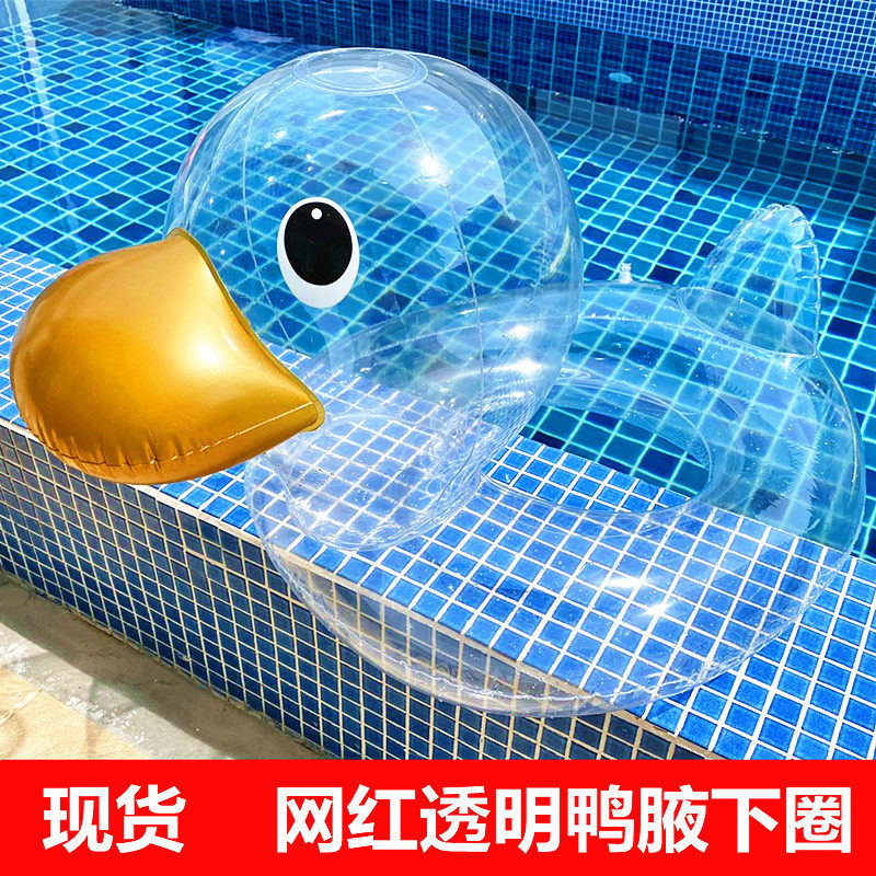 厂家现货ins网红宝宝泳圈腋下圈透明大头鸭子游泳圈浮力救生座圈