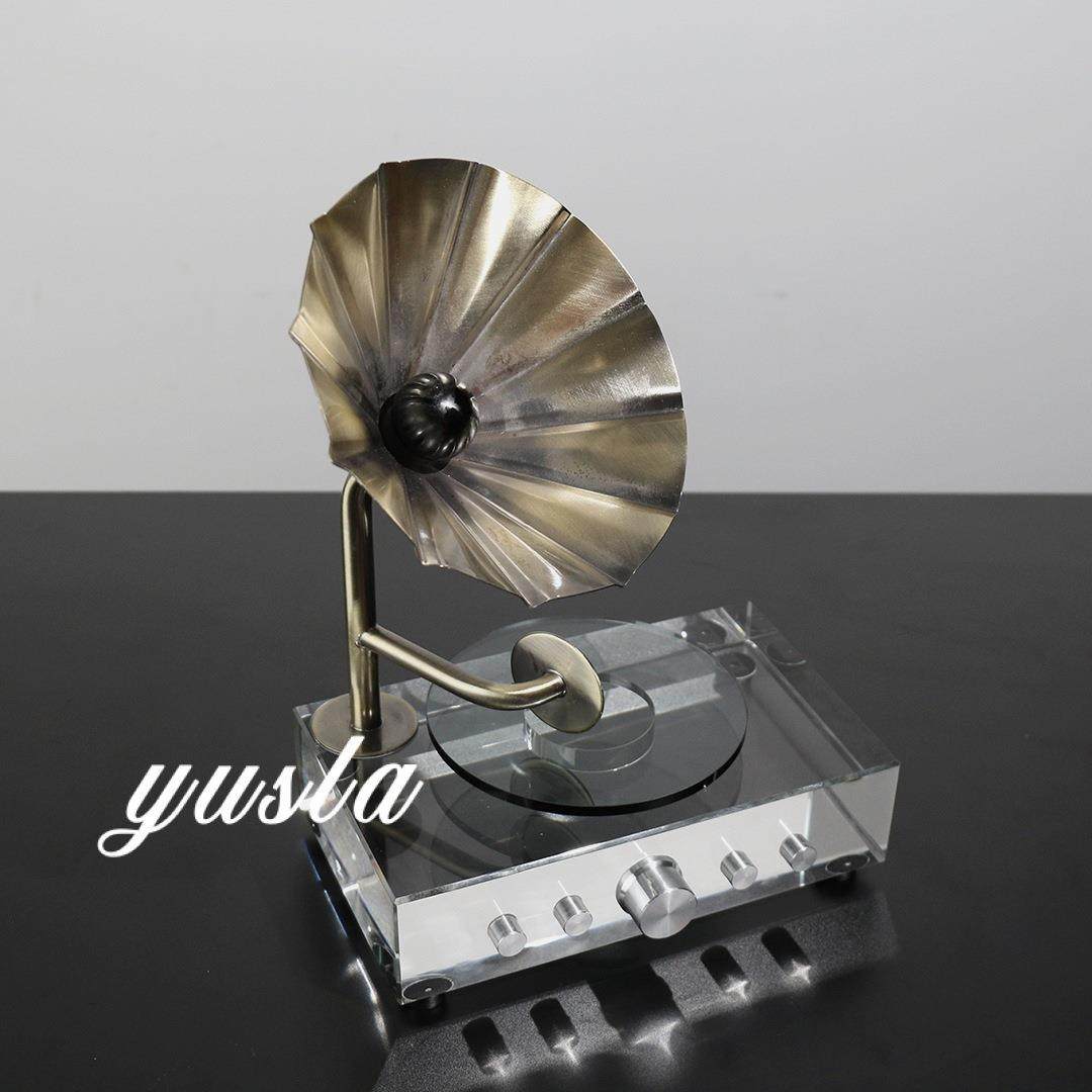 新中式简约复古留声机摆件书房柜电视柜客厅办公室售楼处软装饰品