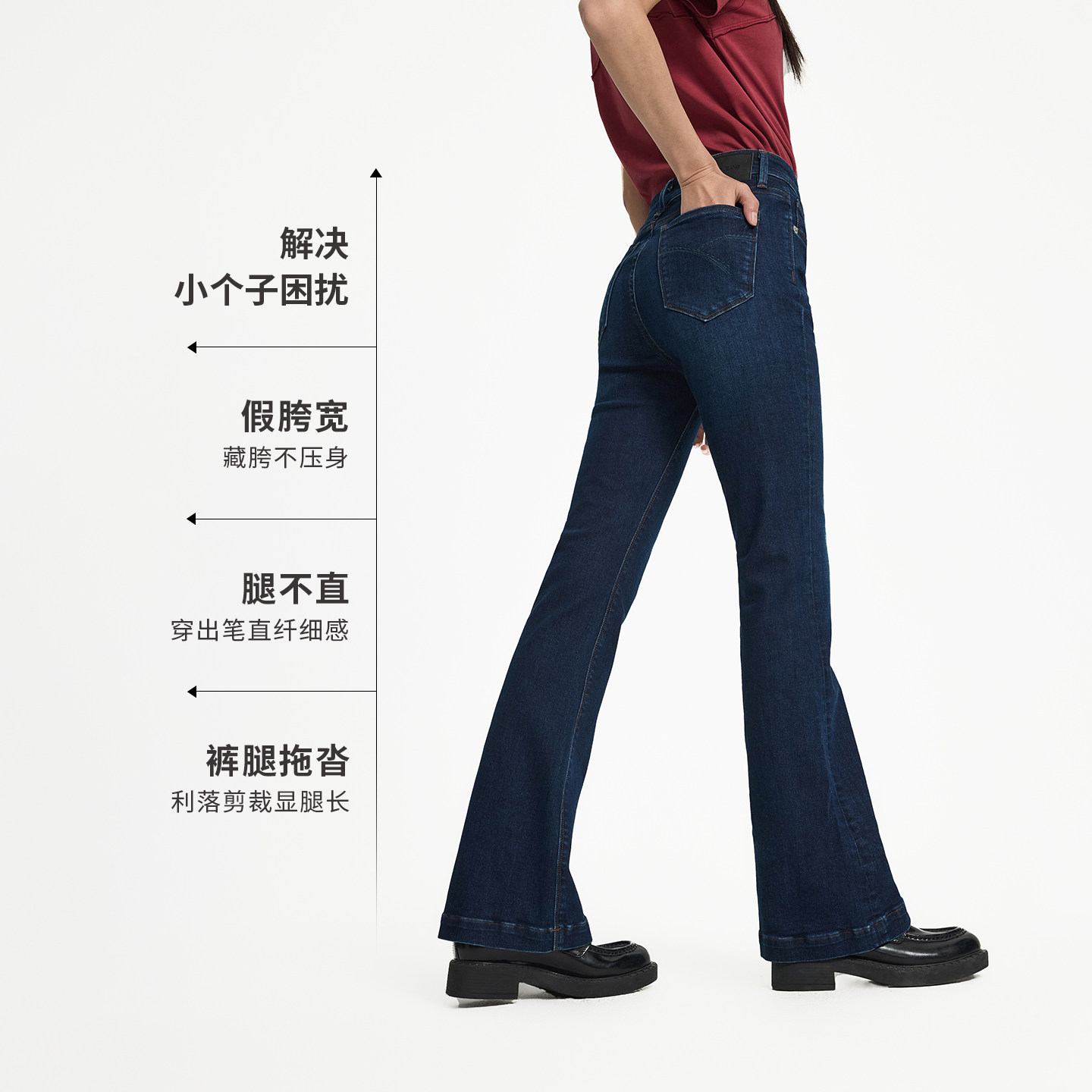 艾恩晟 25年秋冬新款牛仔裤女微喇叭 深蓝色弹性窄版修身显瘦