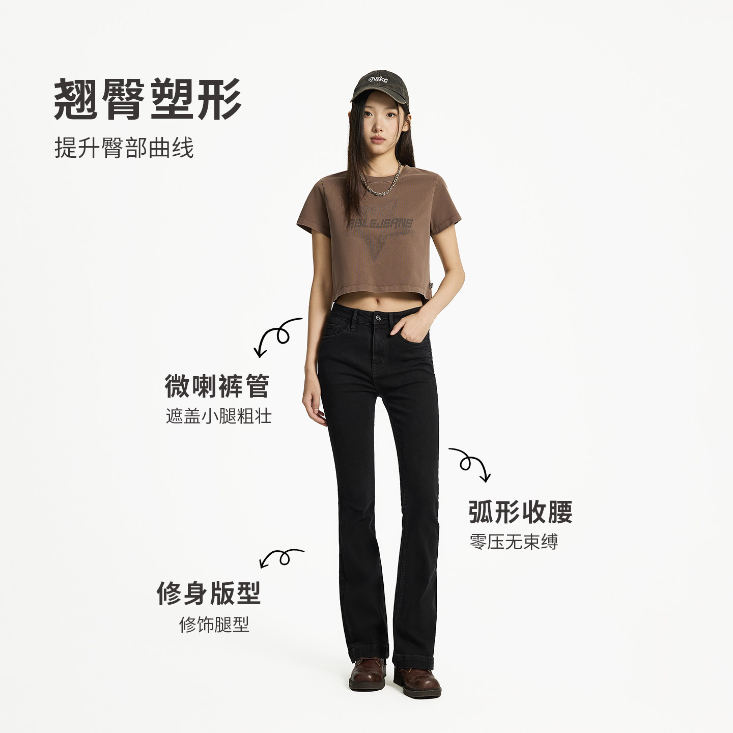 ABLE JEANS【马蹄裤】女士复古高腰修身弹力显瘦微喇牛仔裤加绒