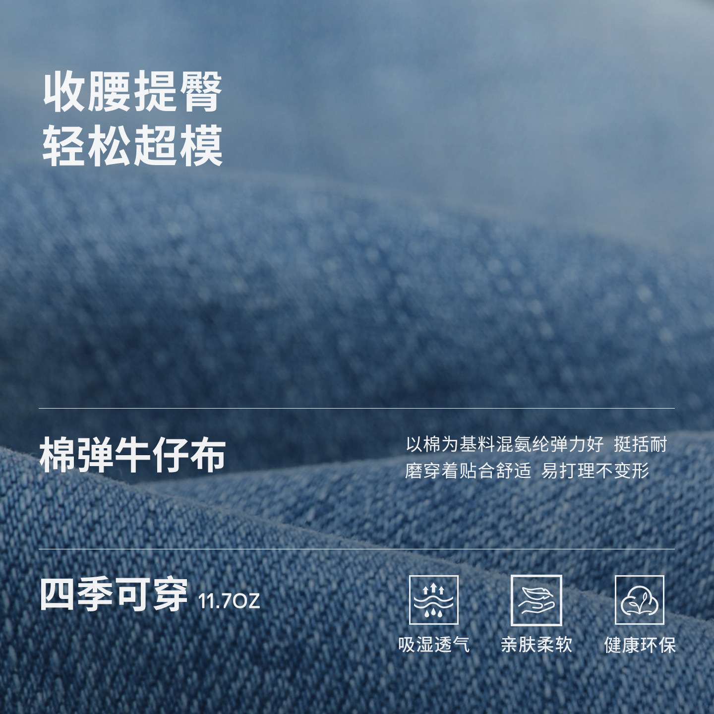 森柔牛仔|森马牛仔裤女抓毛长裤女生冬季半松紧腰直筒裤美式休闲