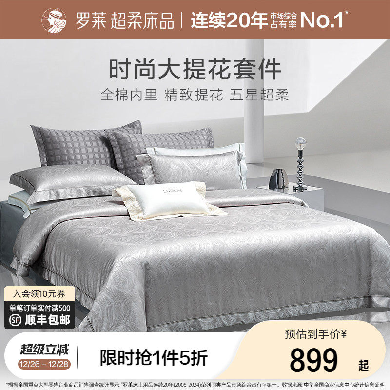 罗莱家纺新品床上用品全棉纯棉高支提花被套轻奢家居四件套