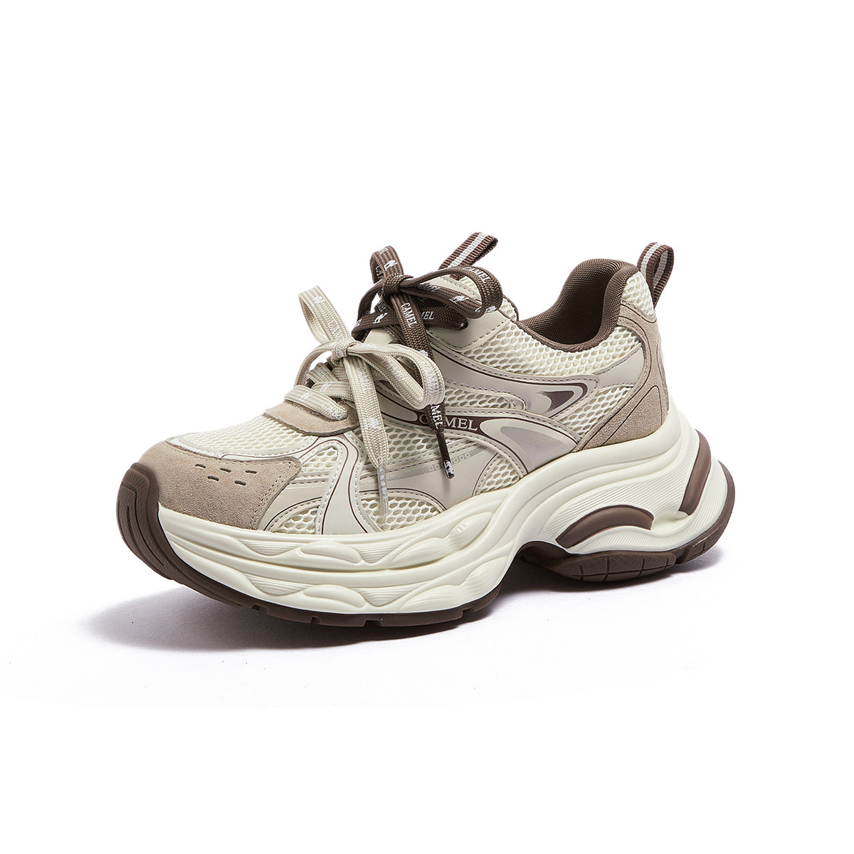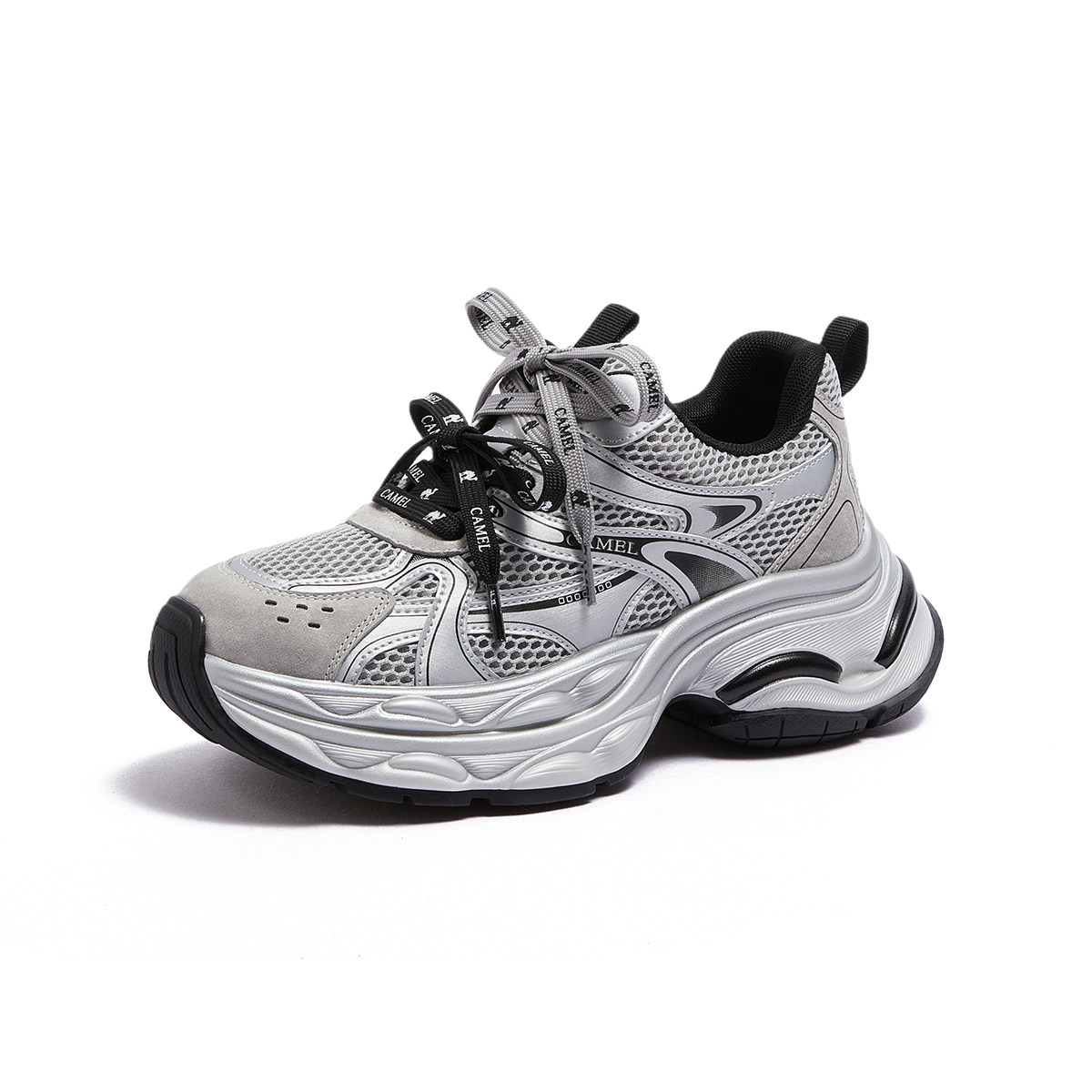 骆驼女鞋2026春季新款厚底老爹鞋双鞋带增高运动休闲鞋厚底女鞋