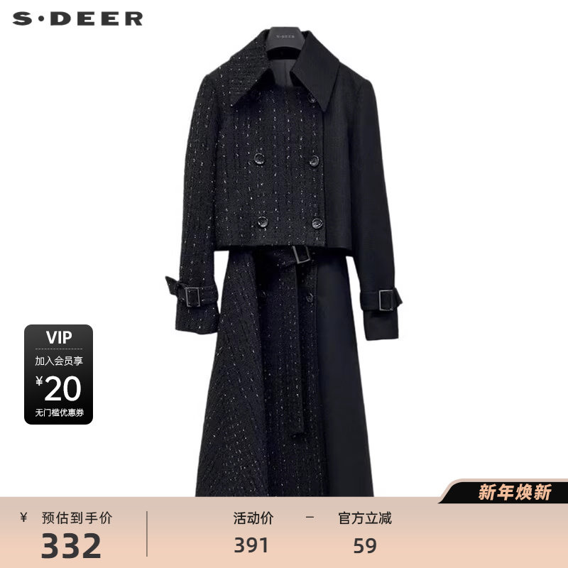 sdeer圣迪奥女装小香风条纹收腰外套连衣裙套装S234Z1405