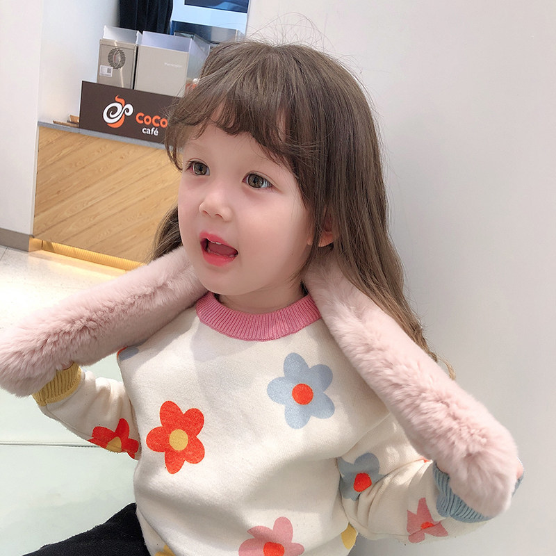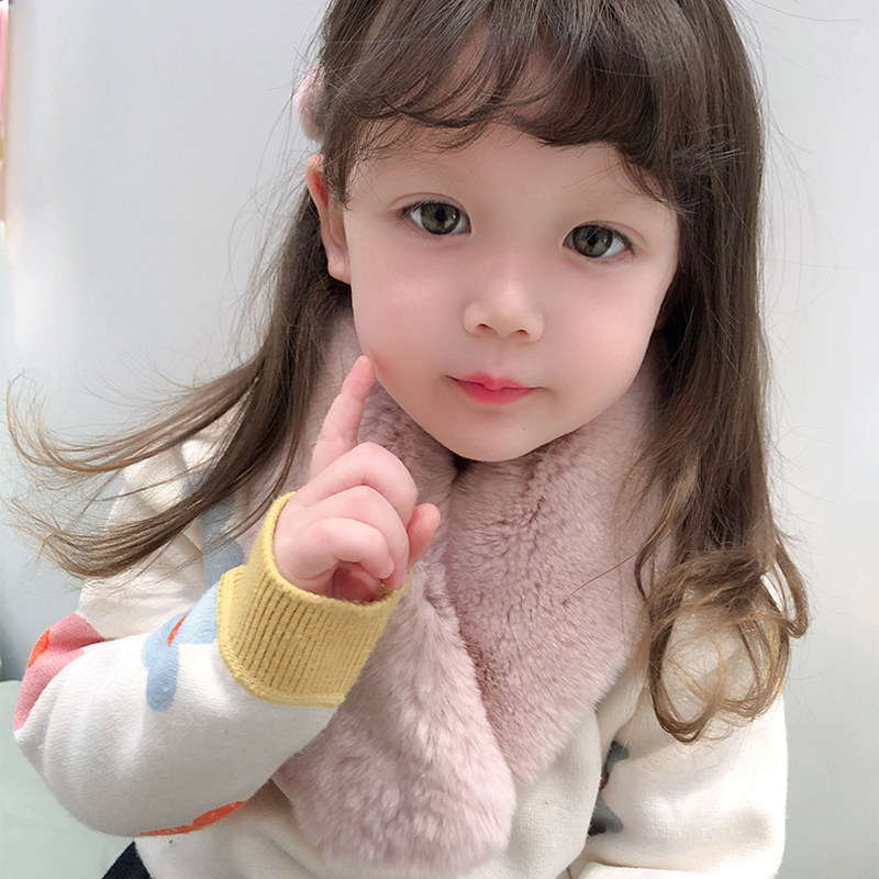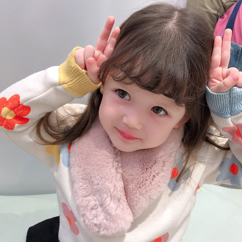 围巾女冬季可爱少女毛绒韩版獭兔毛加厚吸扣宝宝小孩百搭学生围脖
