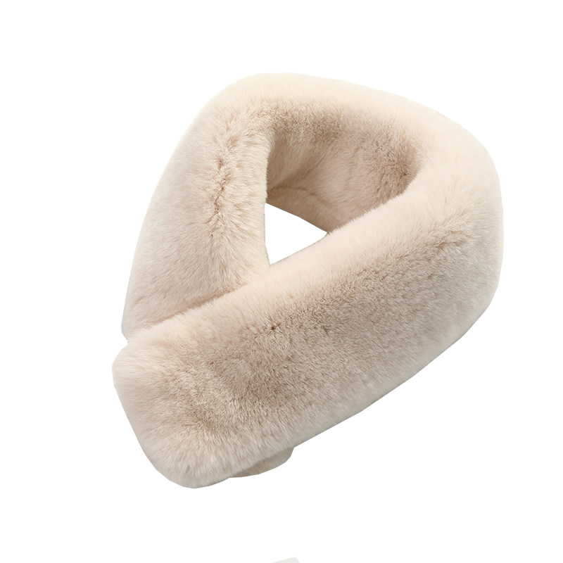 毛绒围巾女款2025新款冬韩系氛围感可爱百搭保暖交叉毛领围脖护颈