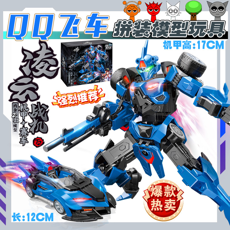 启蒙积木QQ飞车模型凌云战机御皇铠甲孙悟空机甲拼装益智玩具礼物